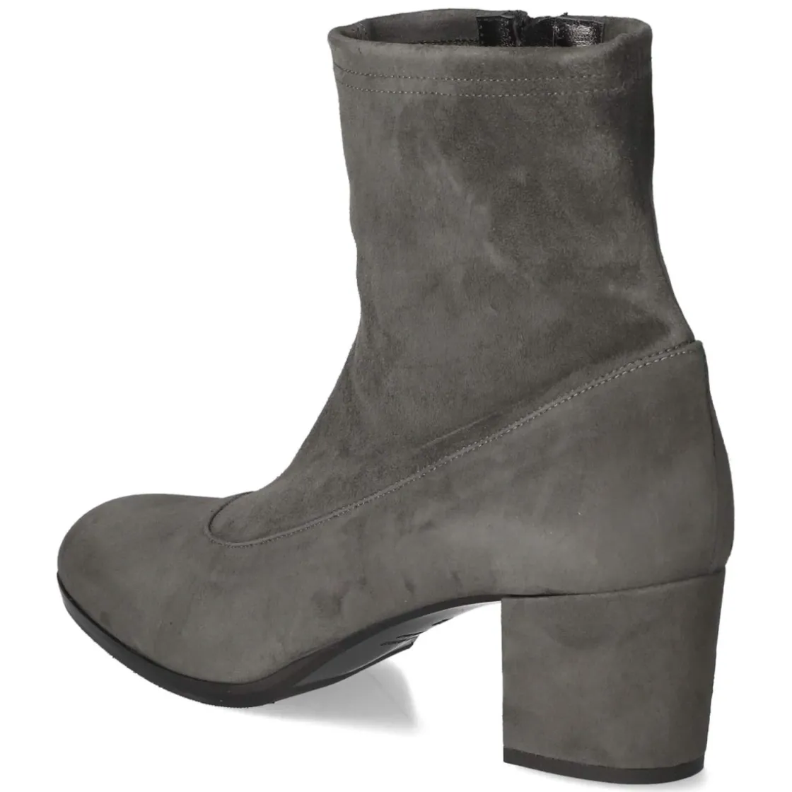 Die grauen Stiefeletten von 42Plus verbinden zeitloses Design mit spürbarem Komfort. Die Passform fällt normal aus und sorgt für einen vertrauten Sitz. Das besonders weiche Rauleder zeigt eine samtige Oberfläche und wird von einem leichten Lederfutter begleitet, das zusammen mit der hautfreundlichen, leicht gepolsterten Lederdecksohle für ein angenehmes Fußklima steht. Der stabile Blockabsatz mit 5 cm Höhe bietet Halt, während die runde Spitze und der verstärkte Zehen- sowie Fersenbereich Schutz und Formbeständigkeit sichern. Ein seitlicher Reißverschluss ermöglicht den bequemen Einstieg, die flexible, rutschhemmende Laufsohle unterstützt jeden Schritt. Hochwertige Verarbeitung und Made in Italy unterstreichen den Anspruch an Qualität. Modetipp: Zu Cropped-Jeans und Wollmantel entsteht ein moderner Citylook; mit Midikleid und feiner Strumpfhose wirken die Stiefeletten elegant und alltagstauglich zugleich.
