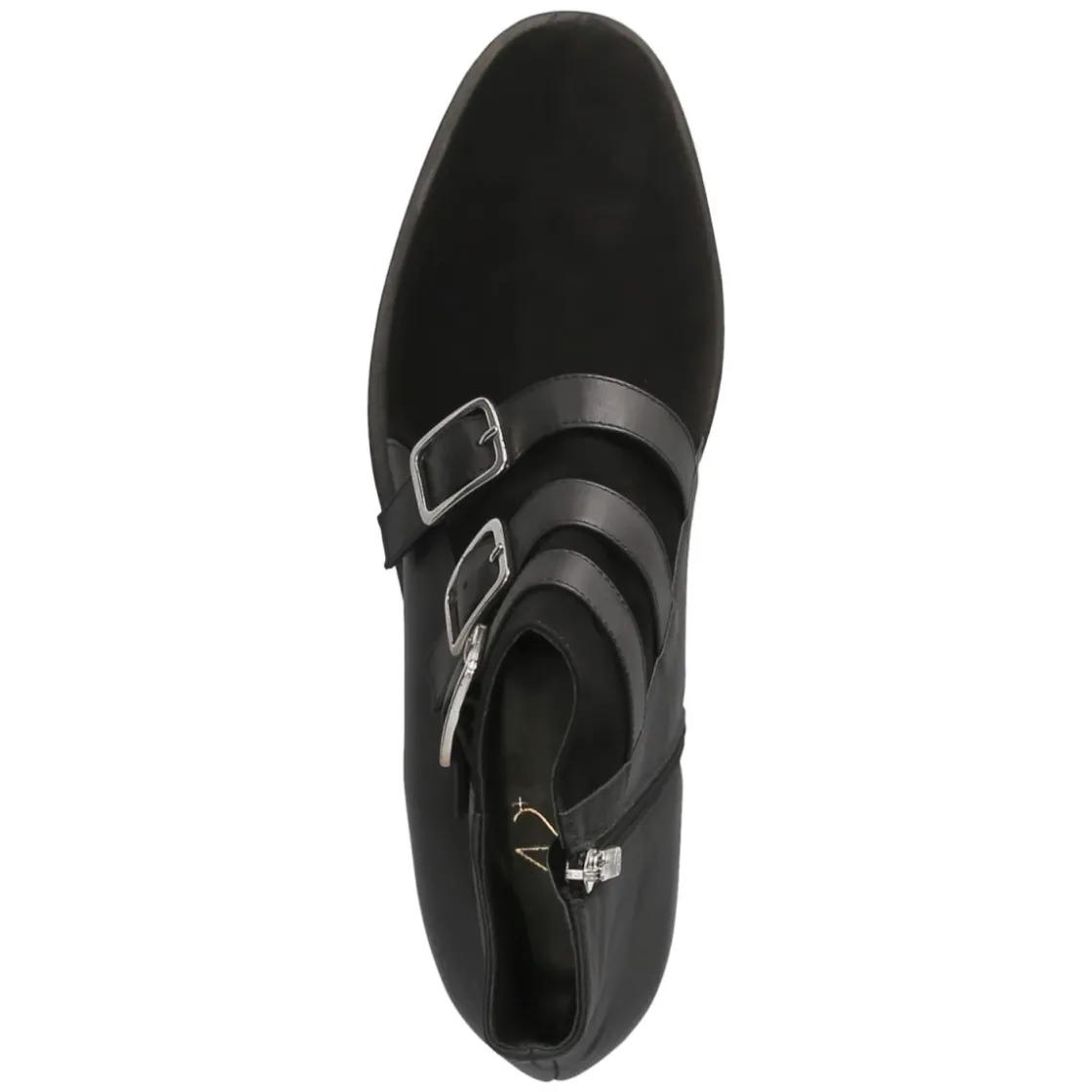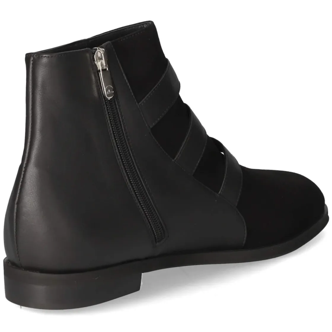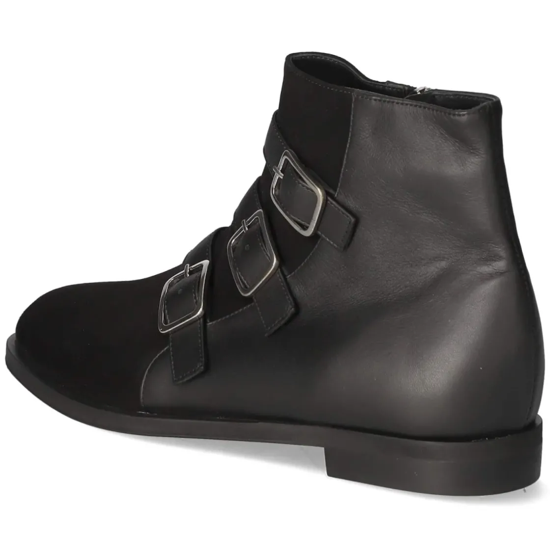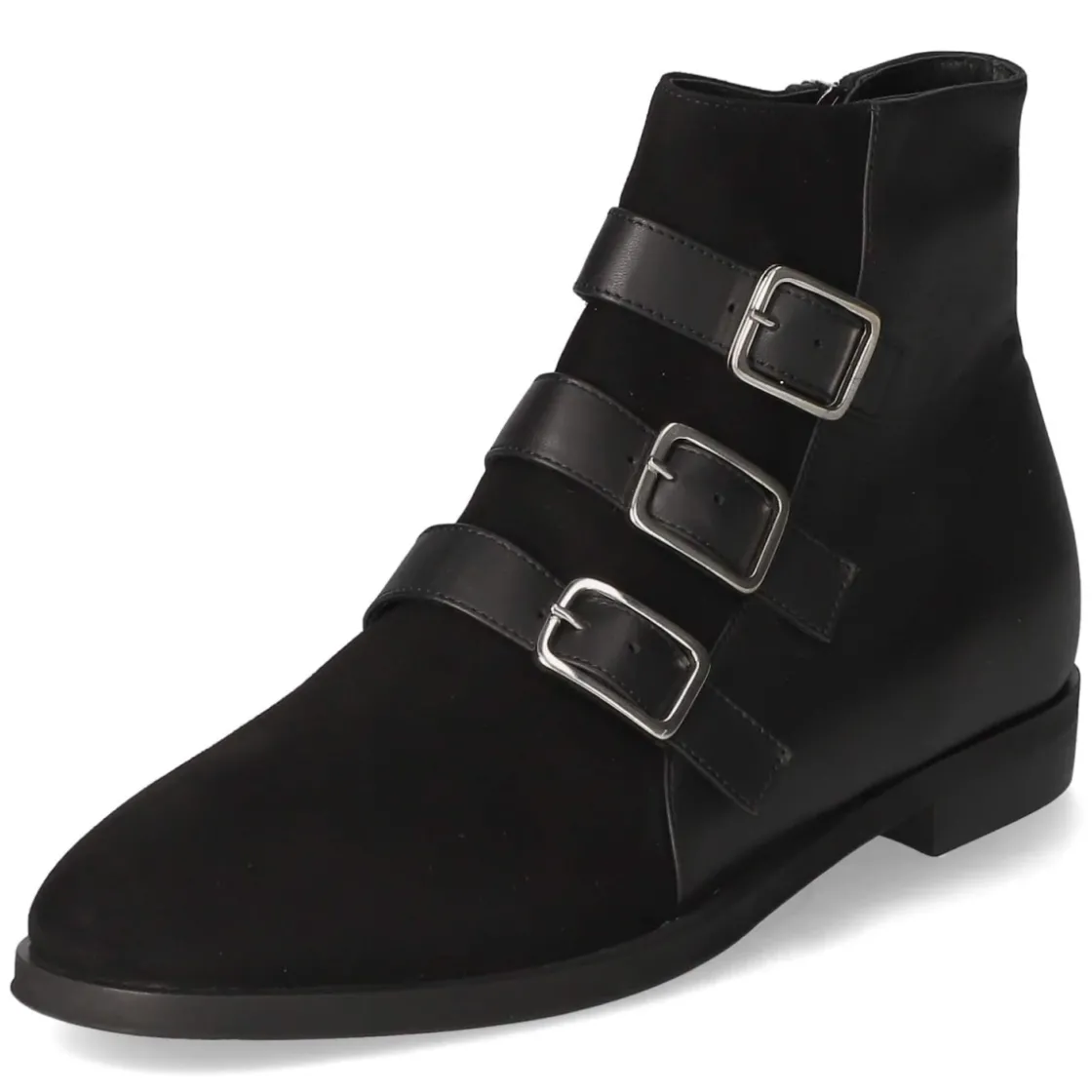 Die Stiefeletten von 42Plus vereinen robuste Qualität und edle Optik in einem zeitlosen Design. Weiches Rauleder umhüllt den Fuß, während die runde Spitze und der 1,5 cm hohe Blockabsatz für bequemen Halt im Alltag sorgen. Ein seitlicher Reißverschluss ermöglicht schnelles An- und Ausziehen, drei Zierriemen mit silberfarbenen Schnallen und feine Ziernähte setzen stilvolle Akzente. Innen überzeugt ein leichtes Lederfutter, ergänzt von einer hautfreundlichen Lederdecksohle und einem sanft gepolsterten Lederfußbett. Die flexible Laufsohle unterstützt ein angenehmes Abrollgefühl, die Passform fällt normal aus. Hochwertige Verarbeitung und das Prädikat Made in Italy runden das Modell ab. Modetipp: Ideal zu Straight-Leg-Jeans, feinem Rollkragenpullover und Oversize-Blazer für einen modernen City-Look.
