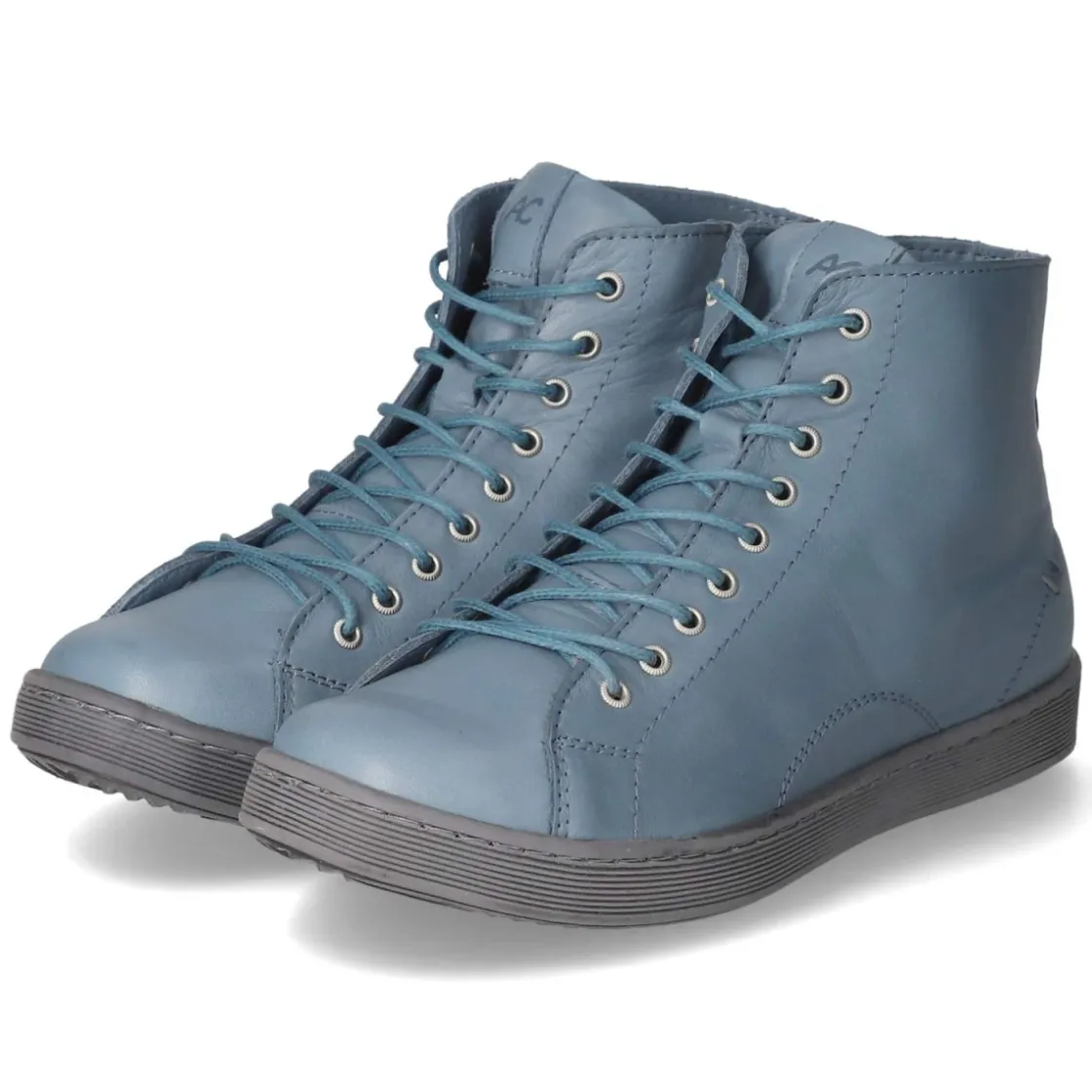 Die blauen Schnürstiefeletten von Andrea Conti verbinden urbane Lässigkeit mit durchdachtem Komfort. Glattes, atmungsaktives Echtleder umschließt den Fuß angenehm, während die lederne Decksohle und das komfortable Wechselfußbett für ein wohliges Tragegefühl im Alltag sorgen. Die runde Schuhspitze bietet Zehenfreiheit, die verstärkte Ferse Stabilität. Praktische Schnürsenkel treffen auf einen seitlichen zusätzlichen Reißverschluss, wodurch das An- und Ausziehen besonders bequem gelingt. Modische Ziernähte, metallische Akzente und ein dezentes Markendetail setzen stilvolle Highlights. Die flexible, rutschfeste Laufsohle unterstützt sicheren Halt auf verschiedensten Untergründen. Der Schnitt fällt normal aus und passt sich erwachsenen Damenfüßen verlässlich an. Modetipp: Zu Cropped-Jeans, einem feinen Strickrolli und einem Wollmantel entsteht ein mühelos eleganter City-Look.