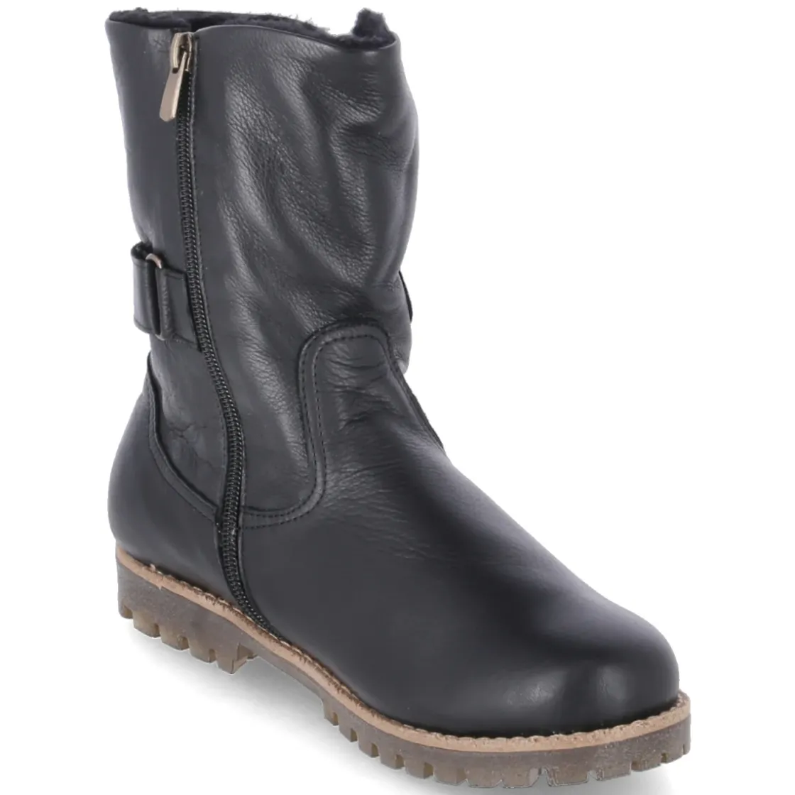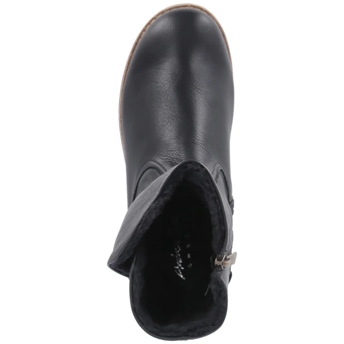 Diese Stiefeletten von Andrea Conti verbinden zeitlose Optik mit funktionalem Komfort. Weiches Glattleder und eine hautfreundliche Lederdecksohle sorgen für ein angenehmes Fußklima, das Warmfutter hält zuverlässig warm. Der praktische Reißverschluss erleichtert den Einstieg, während der Klettverschlussriemen am Schaft für zusätzlichen Halt sorgt. Ein rund zulaufender Leisten, der verstärkte Zehen- und Fersenbereich sowie die flexible, rutschhemmende Profillaufsohle bieten Stabilität im Alltag. Der 2,5 cm hohe Blockabsatz entlastet und bleibt den ganzen Tag über bequem. Das gepolsterte, herausnehmbare Wechselfußbett lässt sich bei Bedarf gegen eigene Einlagen tauschen. Dank klassischem Schwarz und feinen Ziernähten ergeben sich vielseitige Styling-Optionen, die Passform fällt normal aus. Modetipp: Zu cropped Straight-Leg-Jeans und einem wolligen Oversize-Mantel entsteht ein moderner City-Look, abends passt ein Midikleid mit blickdichter Strumpfhose.