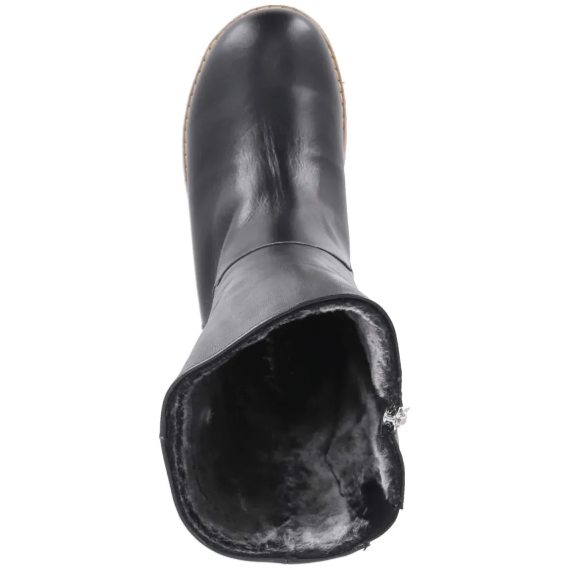 Zeitloser Begleiter für kalte Tage: Der schwarze Winterstiefel von Andrea Conti verbindet robustes Echtleder mit weichem Warmfutter aus Kunstfell und sorgt für wohlige Wärme vom ersten Schritt an. Das glatte Oberleder präsentiert sich pflegeleicht und formstabil, die runde Spitze bietet entspanntes Platzangebot. Ein seitlicher Reißverschluss erleichtert den Einstieg, ein kleiner Elastikeinsatz am Schaft erhöht die Beweglichkeit. Die Lederdecksohle liegt angenehm am Fuß, das gepolsterte, herausnehmbare Fußbett schafft zusätzlichen Komfort und ermöglicht den Einsatz eigener Einlagen. Als relaxtes Leichtgewicht entlastet der Stiefel im Alltag, während die flexible, rutschfeste Laufsohle sicheren Halt auf winterlichen Wegen liefert. Mit einem Schafthöhenmaß von ca. 27 cm und einem Umfang von ca. 36 cm sowie normaler Passform entsteht eine harmonische Silhouette. Modetipp: Besonders stimmig zu Wollmantel, Strickkleid und blickdichter Strumpfhose in Anthrazit.