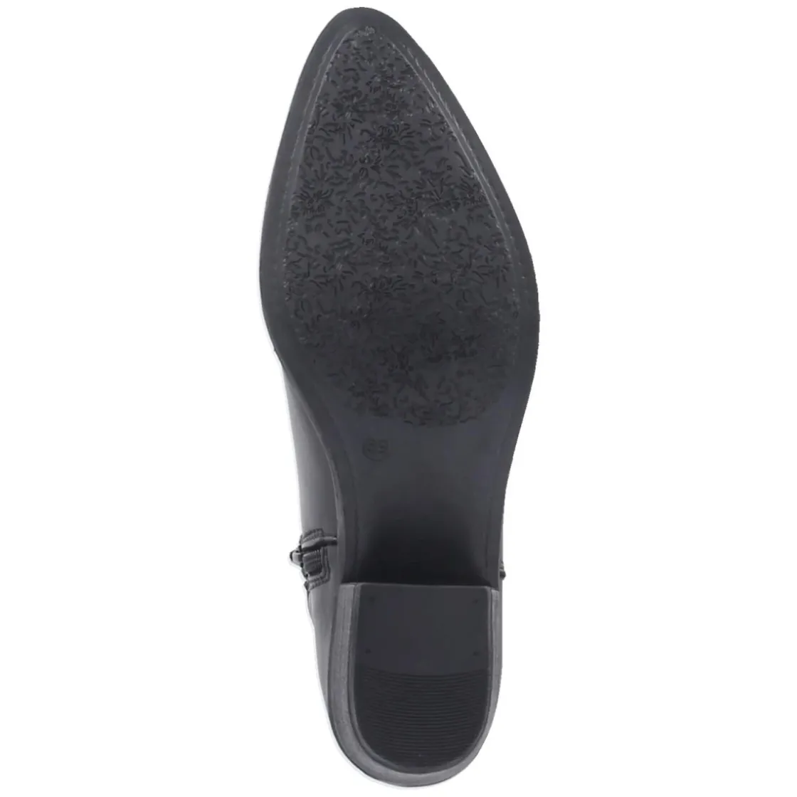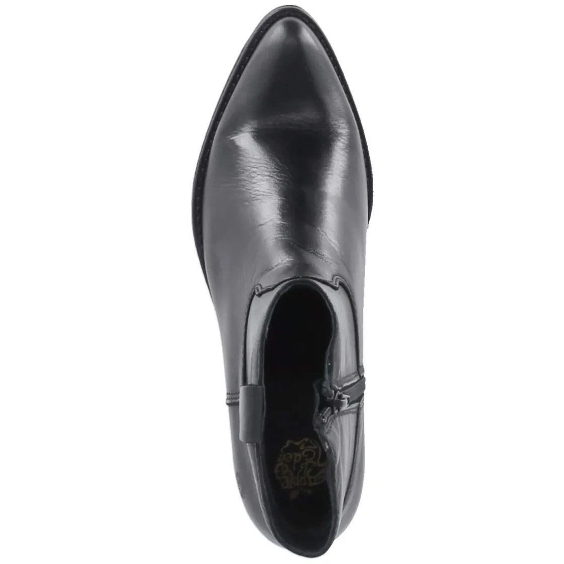 Die Stiefeletten von Apple of Eden setzen auf reduziertes Design und hochwertiges Material. Glattes, langlebiges Echtleder in tiefem Schwarz formt eine elegante Silhouette mit spitzer Kappe, die den Fuß optisch streckt. Ein 5 cm hoher Blockabsatz sorgt für angenehme Höhe und sicheren Stand, während der seitliche Reißverschluss einen bequemen Einstieg ermöglicht. Im Inneren unterstützt die hautfreundliche Lederdecksohle ein angenehmes Fußklima, ideal für lange Tage zwischen Büro und Freizeit. Die Passform fällt normal aus und schmiegt sich dank der fein gearbeiteten Leistenform harmonisch an. Ein Allrounder für Damen, der souveräne Auftritte garantiert und sich mühelos in eine erwachsene Garderobe einfügt. Modetipp: Mit Cropped-Jeans und Oversize-Blazer entsteht ein moderner Kontrast aus klarer Linie und lässiger Weite.