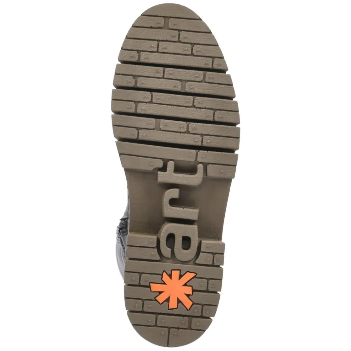 Der Stiefel AMBERES von Art zeigt einen charakterstarken Mix aus Leder und Synthetik und setzt mit seiner runden Spitze und dem 5 cm hohen Plateau ein modisches Statement. Der leicht stretchige Schaft mit ca. 34 cm Höhe und 34 cm Umfang schmiegt sich angenehm an, während ein leichtes Futter Wärme an kühlen Tagen spendet. Für bequemes An- und Ausziehen sorgt der seitliche Reißverschluss, die verstärkte Ferse stabilisiert bei jedem Schritt. Das Wechselfußbett erhöht den Tragekomfort und lässt sich individuell austauschen. Highlight ist die starke, rutschhemmende Laufsohle in Olivegrün, die dem schwarzen Design eine moderne Note gibt. Modetipp: Zu Strickkleid und Wollmantel entsteht ein eleganter City-Look; mit blickdichter Strumpfhose und Oversize-Pullover wird der Plateau-Stiefel zum lässigen Kontrastgeber.