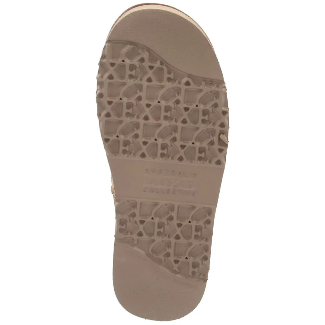 Die Winterboots COZY von Australia Luxe verbinden markantes Plateau mit behaglicher Wärme. Weiches Rauleder in Braun und das runde Leistenbild sorgen für eine zeitlose Silhouette, während das warme Lammfellfutter den Fuß umschließt und für wohlige Isolation steht. Die 4,5 cm hohe, starke und zugleich leichte Plateausohle federt jeden Schritt, die verstärkte Ferse mit Metall-Label unterstreicht die wertige Verarbeitung. Ohne Verschluss gelingt der Einstieg dank Anziehlasche besonders unkompliziert, die Passform fällt normal aus. Eine Decksohle aus Textil ergänzt den Komfort, markante Nähte akzentuieren das natives Design. Modetipp: Zu geripptem Strickkleid in Creme und Oversize-Wollmantel in Karamell tragen, dazu eine strukturierte Umhängetasche und grob gestrickte Socken, die dezent über dem Schaft sichtbar bleiben.
