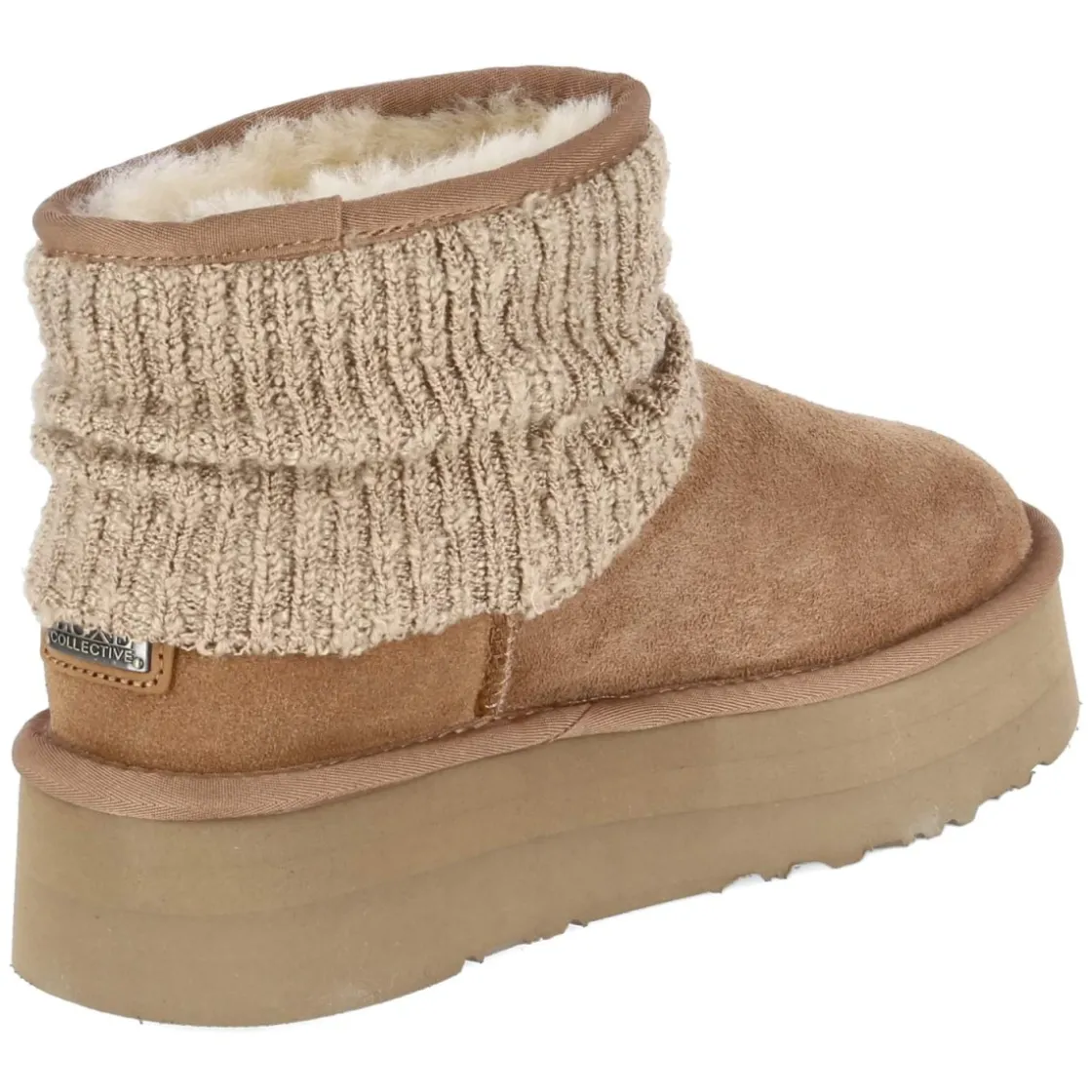 Winterboots FAME von Australia Luxe setzen in Braun auf kuschlige Wärme und moderne Linie. Der robuste Material-Mix aus Leder und Textil trifft auf ein weiches Lammfellfutter, das gemeinsam mit der Textildecksohle für spürbaren Wohlfühlfaktor sorgt. Die starke, leichte Plateausohle mit 4,5 cm Höhe gibt neuen Stand, während runde Spitze und das Design ohne Verschluss unkomplizierte Eleganz liefern. Markante Nähte, die verstärkte Ferse mit Metall-Label sowie der gepolsterte Einstieg mit Umschlagkrempe und Lederpatch in Strickoptik runden den Look ab. Das Modell fällt normal aus und begleitet mühelos durch kalte Tage. Modetipp: Besonders stimmig zu wadenlangen Strickkleidern und Oversize-Mänteln, dazu gerippte Socken, die dezent über den Schaft blitzen.
