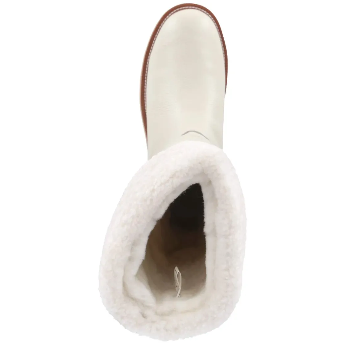 Der Winterstiefel TITAN von Australia Luxe verbindet urbane Eleganz mit Funktion. Weißes Glattleder in robuster Qualität trifft auf ein warmes Lammfellfutter, das zusammen mit der textilen, angenehm temperierten Decksohle und dem weich gepolsterten Einstieg in Teddyoptik hohen Tragekomfort bietet. Die runde Spitze sorgt für genügend Zehenfreiheit, die verstärkte Ferse mit Metall-Label setzt einen markanten Akzent. Ein praktischer Reißverschluss erleichtert das An- und Ausziehen, während die rutschfeste Profilsohle sicheren Halt auf winterlichen Wegen gibt. Der Schaft misst ca. 43 cm in der Höhe bei ca. 34 cm Umfang und umschließt zuverlässig. Fällt normal aus und ist für Erwachsene konzipiert. Modetipp: Zum cremefarbenen Wollmantel und einem gestrickten Midikleid stylen; blickdichte Strumpfhose und Lederhandschuhe in Taupe runden den cleanen Winterlook ab.