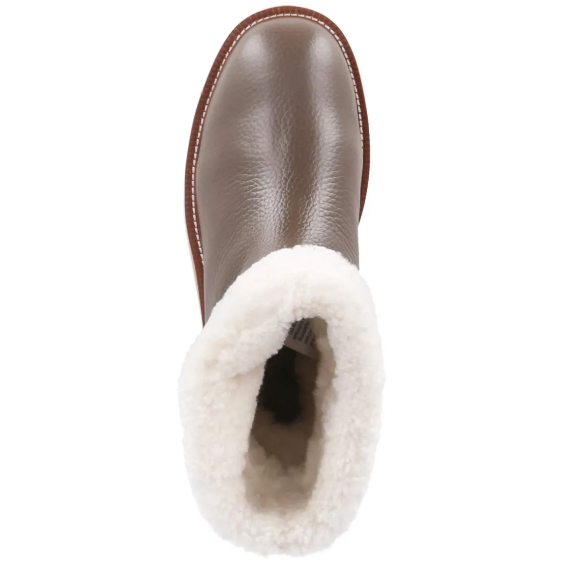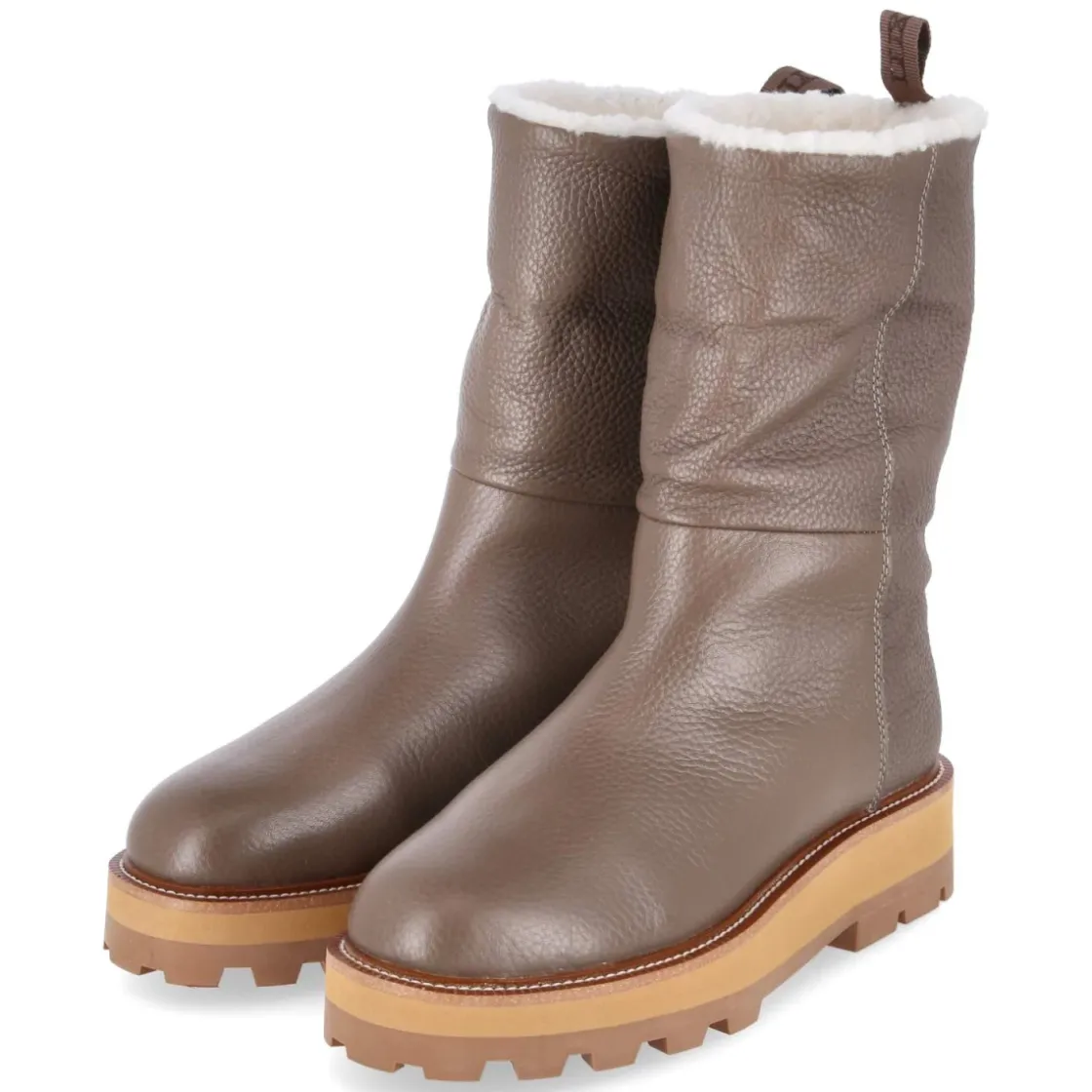 Der Winterstiefel TRINITY von Australia Luxe vereint urbane Lässigkeit mit funktionaler Wärme. Glattes, robustes Echtleder in Taupe schmiegt sich formstabil an und schützt zuverlässig, innen sorgt ein dichtes Lammfellfutter für kuschelige Isolation. Die runde Spitze und der Einstieg ohne Verschluss, unterstützt von einer Anziehlasche, machen das An- und Ausziehen unkompliziert. Markant ist die umschlagbare Schaftkrempe mit Wollfutter: hoch getragen misst der Schaft ca. 22 cm bei 28 cm Umfang, umgeschlagen zeigt sich ein softer Kontrast. Eine rutschfeste Profilsohle mit zweifarbigem Sohlenrahmen liefert Halt auf winterlichen Wegen, die Decksohle aus Textil erhöht den Komfort. Hinten setzt ein dezentes Metallabel ein edles Detail. Dank normaler Passform und der vielseitigen Farbe ergeben sich zahlreiche Kombinationen. Modetipp: Mit cremefarbenem Strick, dunkler Skinny und einem langen Wollmantel wirkt Taupe besonders edel.