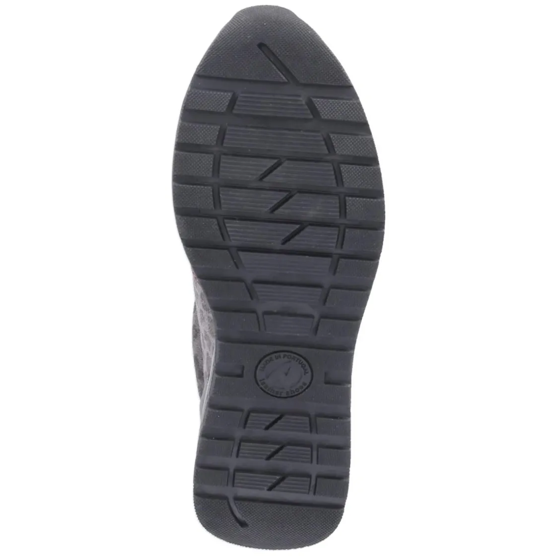 Der Low Sneaker VIVIAN 06 von Beliana vereint urbanen Chic und Komfort in einer zeitlosen Silhouette. Graues Leder in stilvollem Ledermix trifft auf weinrote Highlights und dezente Teile im Animal Print (Leopard), wodurch ein modisches Design mit subtiler Raffinesse entsteht. Die runde Schuhspitze und die flexible, griffige Laufsohle sorgen für angenehmes Auftreten im Alltag, während die verstärkte Zehen- und Fersenpartie zusätzliche Stabilität bietet. Praktisch: der Mix aus Schnürsenkeln und Reißverschluss ermöglicht schnelles An- und Ausziehen. Die Lederdecksohle sowie das Wechselfußbett unterstreichen den hohen Tragekomfort. Der Schnitt fällt normal aus und passt damit zuverlässig zur gewohnten Größe. Modetipp: Besonders stimmig zu Straight-Leg-Jeans in Dunkelblau und einem melierten Wollmantel; dazu eine bordeauxfarbene Crossbody-Bag, die die Akzente aufgreift.