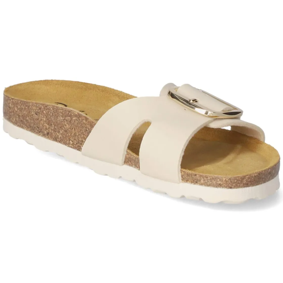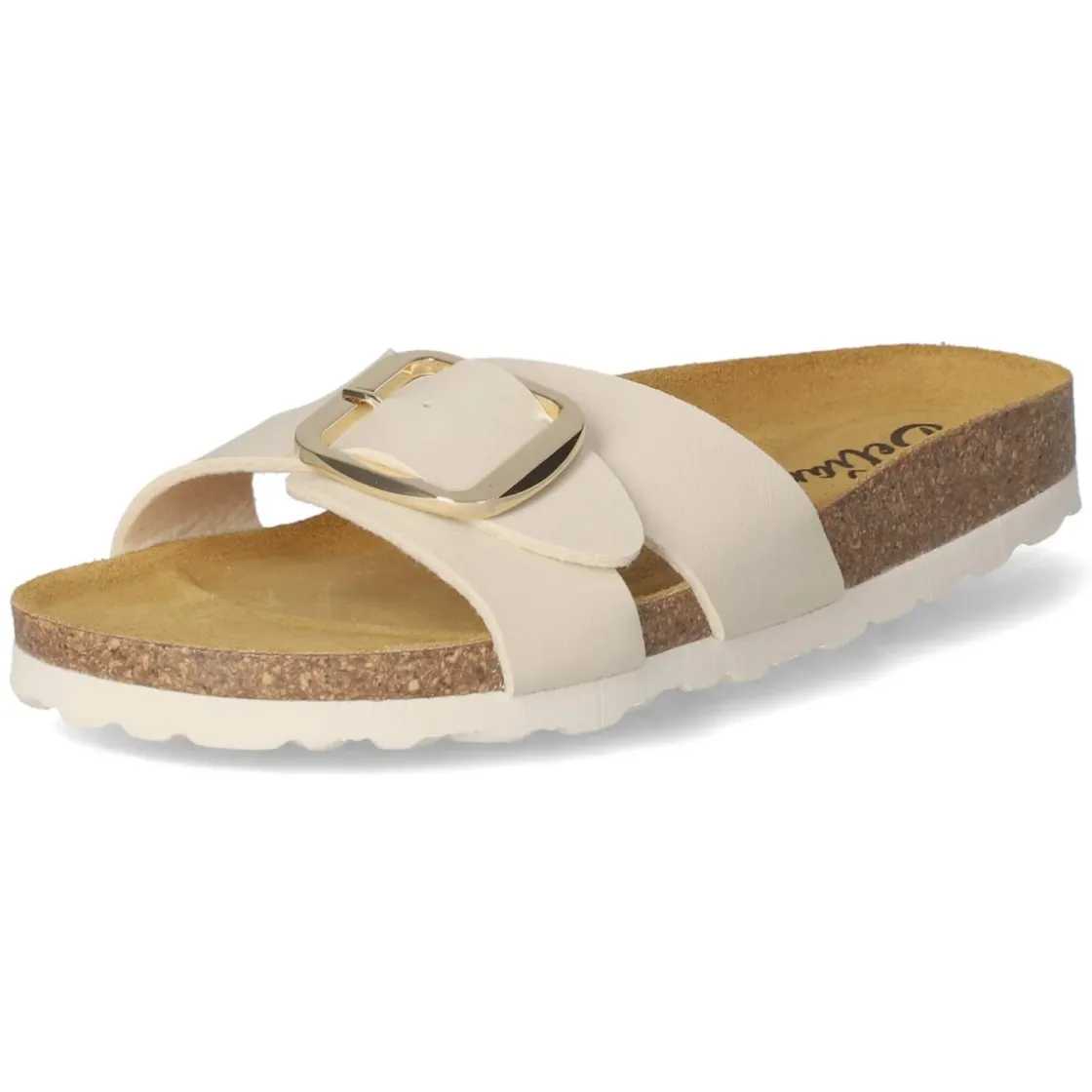 Die Pantoletten von Beliana vereinen reduzierten Chic mit hohem Tragekomfort. Das beige Obermaterial aus modern designter Synthetik wirkt hochwertig und lässt die große goldene Schnalle besonders edel zur Geltung kommen. Die offene Schuhspitze sorgt für sommerliche Leichtigkeit, während die verstellbare Schnalle individuellen Halt ermöglicht. Innen verwöhnt eine vorgeformte Decksohle aus Leder mit angenehmer Stütze – ideal für längere Tage auf den Beinen. Durch den unkomplizierten Einstieg gelingt das Anziehen im Handumdrehen. Die flexible Laufsohle folgt geschmeidig jeder Bewegung und vermittelt ein natürliches Abrollgefühl. In der Passform fällt das Modell normal aus und empfiehlt sich damit als zuverlässiger Begleiter von morgens bis abends. Modetipp: Besonders stimmig zu Leinenkleidern, Culottes und Schmuck in Goldtönen für einen harmonischen Sommer-Look.