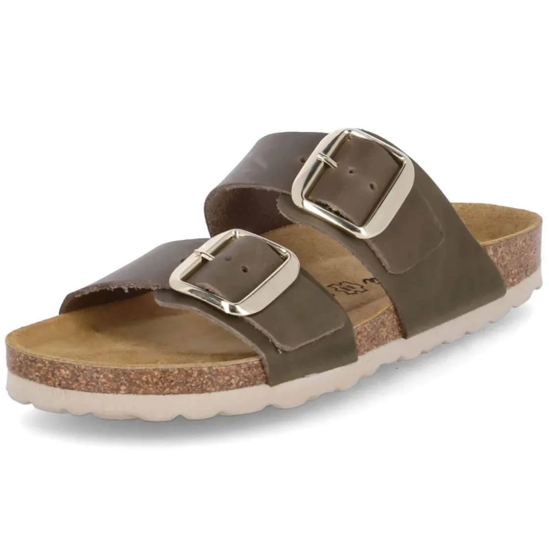 Die Pantoletten von Beliana bringen frische Akzente in Grün und setzen auf wertige Materialien. Weiches Rauleder umschmeichelt den Fuß, während atmungsaktives Echtleder für ein ausgeglichenes Klima sorgt. Das vorgeformte, weiche Kork-Tieffußbett mit Lederbezug entlastet bei jedem Schritt und das gepolsterte Fußbett erhöht den Komfort im Alltag. Eine Schnalle in Goldoptik setzt einen eleganten Kontrast und ermöglicht eine individuelle Anpassung. Die offene Spitze wirkt sommerlich, die profilierte EVA-Laufsohle bietet zuverlässigen Halt auf verschiedenen Untergründen. Dank der klaren Linien und der guten Kombinationsmöglichkeiten passt das Modell vom City-Bummel bis zur Gartenfeier. Modetipp: Zu cropped Jeans, einem cleanen weißen Hemd und einer minimalistischen Ledertasche kommt das Grün besonders modern zur Geltung.