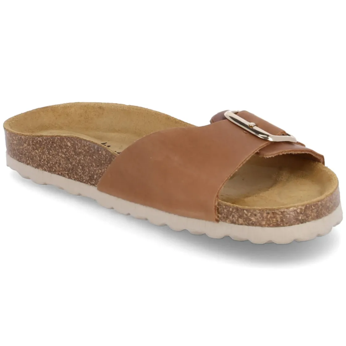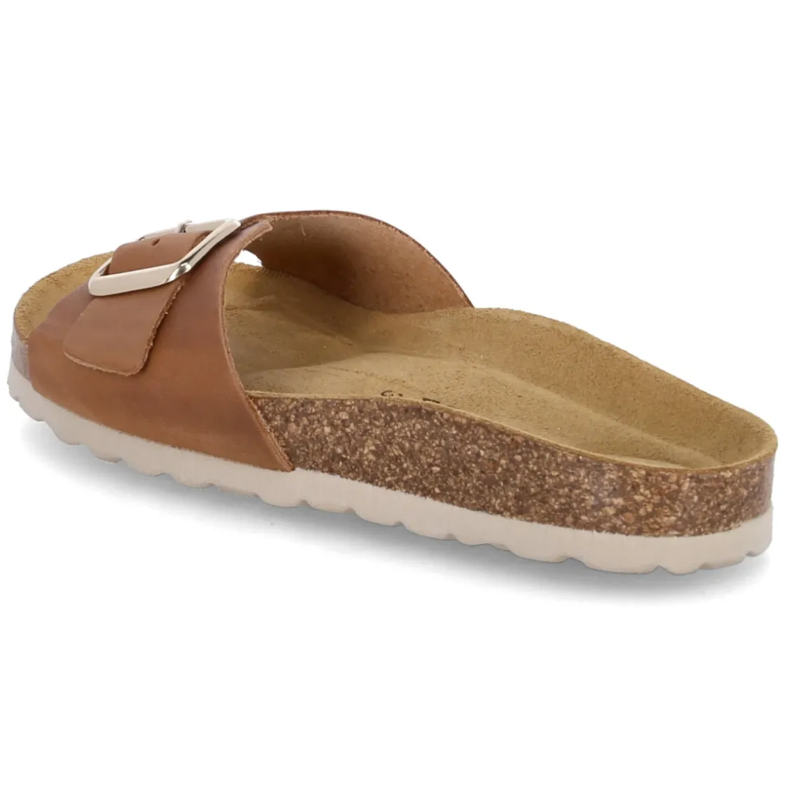 Die Pantoletten von Beliana vereinen lässige Eleganz und Komfort in einem zeitlosen Braunton. Weiches Rauleder schmiegt sich an den Fuß, während ein Riemen mit Schnalle in Goldoptik den Look veredelt und gleichzeitig individuell regulierbar macht. Das vorgeformte, weiche Kork-Tieffußbett mit Lederbezug unterstützt die natürliche Fußform, das gepolsterte Fußbett sorgt für entspanntes Gehen über den ganzen Tag. Eine profilierte EVA-Laufsohle bietet leichte Dämpfung und verlässlichen Halt, die offene Schuhspitze betont sommerliche Leichtigkeit. Robustes Echtleder unterstreicht die Langlebigkeit und macht das Modell zu einem vielseitigen Begleiter mit besonders guten Kombinationsmöglichkeiten. Modetipp: Zu Leinenkleidern in Naturtönen und filigranem Goldschmuck entsteht ein harmonischer Ton-in-Ton-Look, der die goldene Schnalle stilvoll aufgreift.