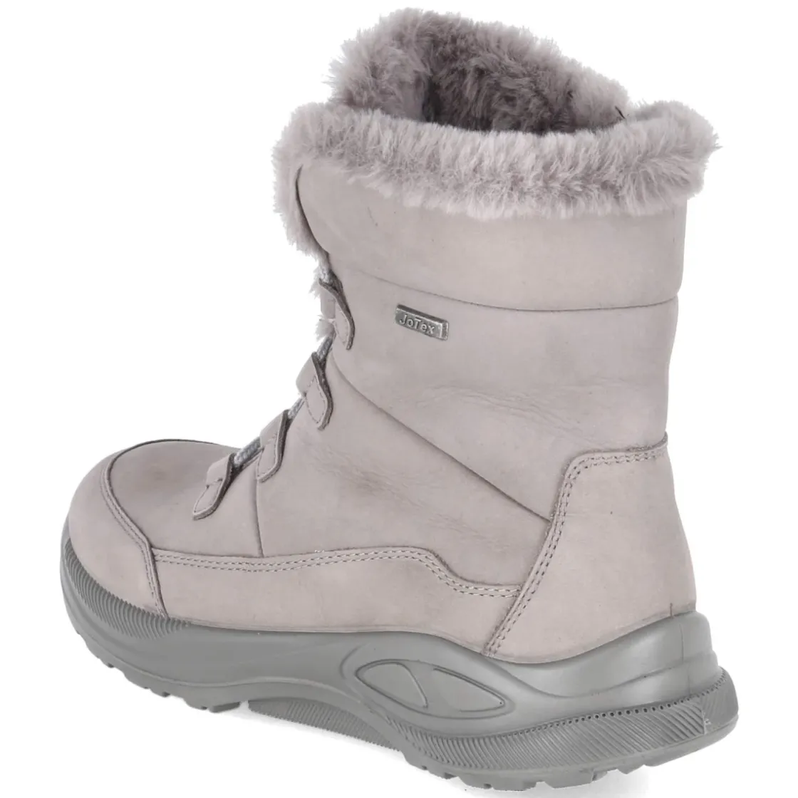 Die Beliana Snowboots in Grau verbinden funktionale Wärme mit klarer Linienführung. Das wasserfeste Obermaterial aus Rauleder schützt vor Nässe, während Warmfutter und gepolsterter Einstieg mit weicher Kunstfellkrempe für behaglichen Komfort sorgen. Eine textile Decksohle und das herausnehmbare Wechselfußbett schaffen ein angenehm trockenes Fußklima und erlauben individuelle Einlagen. Schnürsenkel garantieren präzisen Halt, der praktische Reißverschluss erleichtert das An- und Ausziehen. Der verstärkte Fußrahmen stabilisiert bei winterlichen Bedingungen, die flexible, rutschfeste Profilsohle bietet verlässlichen Grip auf glatten Untergründen. Mit runder Schuhspitze, geringem Gewicht und einer Passform, die normal ausfällt, eignet sich der Stiefel ideal für den Alltag. Modetipp: Zu einer grauen Wollculotte, Steppjacke und grob gestrickten Socken entsteht ein harmonischer Ton-in-Ton-Look mit sportiver Note.