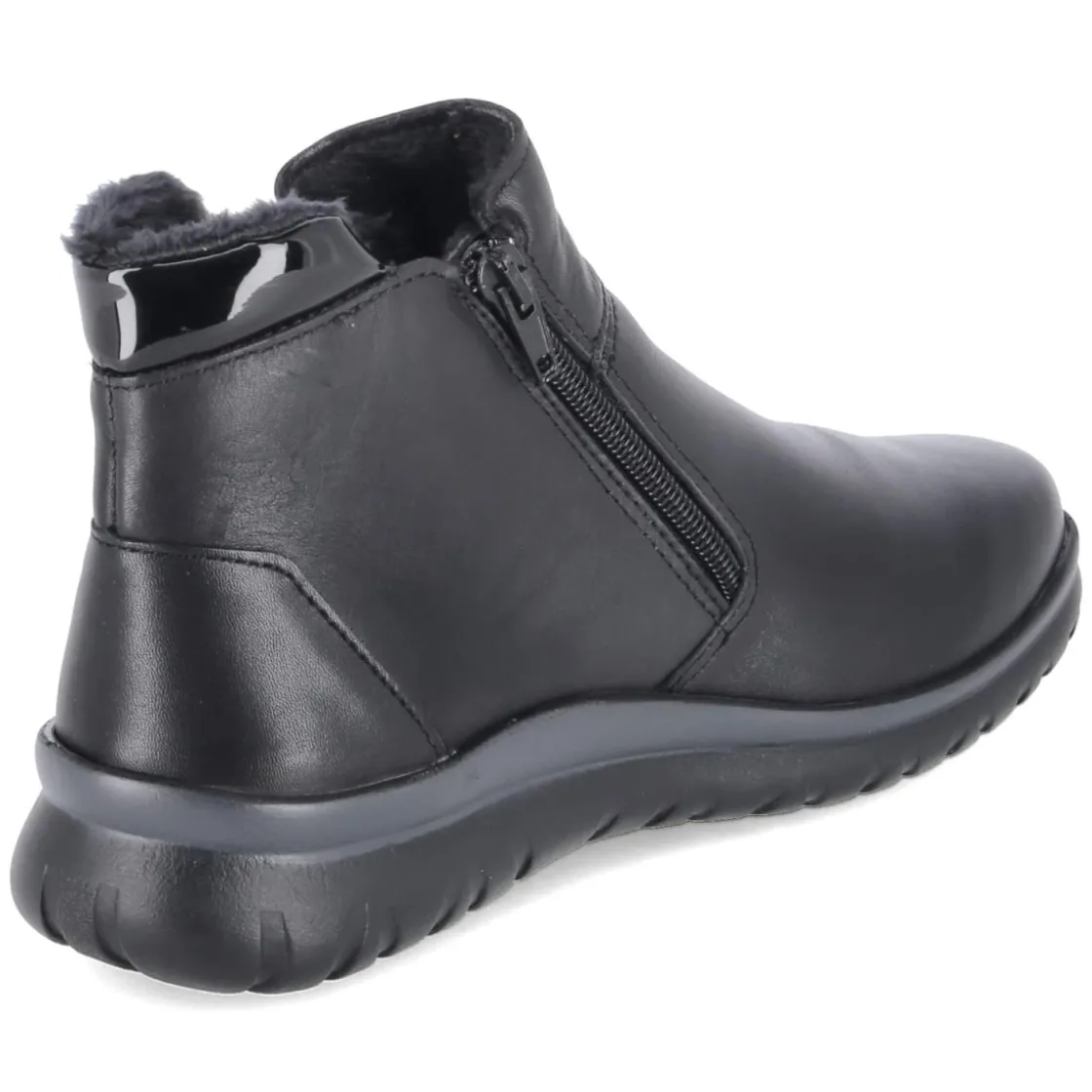 Die Stiefeletten DAHLI 42 von Beliana vereinen klares Design mit komfortorientierten Details. Hochwertiges Glattleder in klassischem Schwarz und eine runde Spitze schaffen einen zeitlosen Look, der sowohl im Alltag als auch im Office überzeugt. Das geringe Gewicht, eine sehr flexible, rutschfeste Laufsohle und die verstärkte Ferse sorgen für angenehmes Gehen und zuverlässigen Halt, während ein leichtes Einstiegspolster den Komfort beim Anziehen erhöht. Das weiche, leichte Futter wärmt an kühlen Tagen, der warm gefütterte Schaft schmiegt sich angenehm an. Ein seitlicher Reißverschluss ermöglicht einen schnellen Einstieg, das Wechselfußbett lässt sich bei Bedarf durch eigene Einlagen ersetzen. Die textile Decksohle trägt sich angenehm auf der Haut, die Passform fällt normal aus. Modetipp: Mit Cropped-Jeans, feinem Strickpullunder und einem langen Wollmantel entsteht ein moderner City-Look; zu Midikleid und blickdichter Strumpfhose wirkt das Modell elegant und alltagstauglich zugleich.