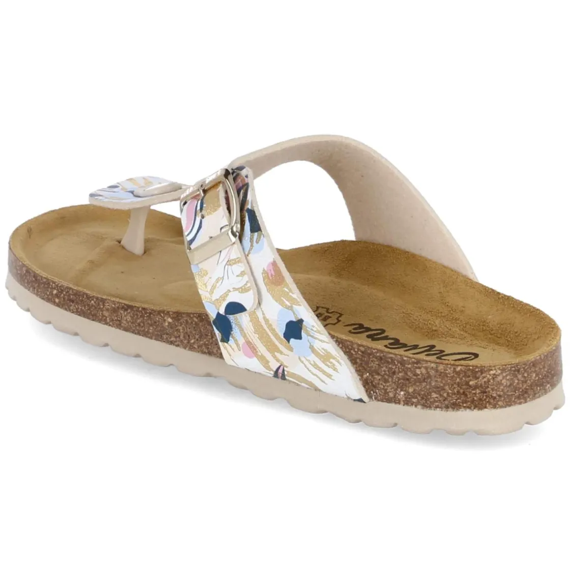 Der Zehentrenner von Beliana verbindet sommerliche Leichtigkeit mit einem kunstvollen Auftritt. Das Obermaterial aus pflegeleichtem Kunstleder zeigt einen bunten, abstrakten Textilprint, der durch feine goldfarbene Elemente edel akzentuiert wird. Die offene Schuhspitze betont den luftigen Charakter, während die verstellbare Schnalle sicheren Halt bietet. Für Komfort sorgt ein weich gepolstertes Fußbett in Kombination mit einer Decksohle aus Leder, die auch an langen Tagen ein angenehmes Tragegefühl ermöglicht. Als relaxtes Leichtgewicht begleitet das Modell zuverlässig durch Stadtbummel, Strandpromenade und Gartenparty. Der Schnitt fällt normal aus und erleichtert die Größenauswahl. Modetipp: Der lebhafte Print wirkt besonders modern zu monochromen Looks in Weiß, Creme oder Schwarz und erhält mit dezentem Goldschmuck eine stilvolle Ergänzung.