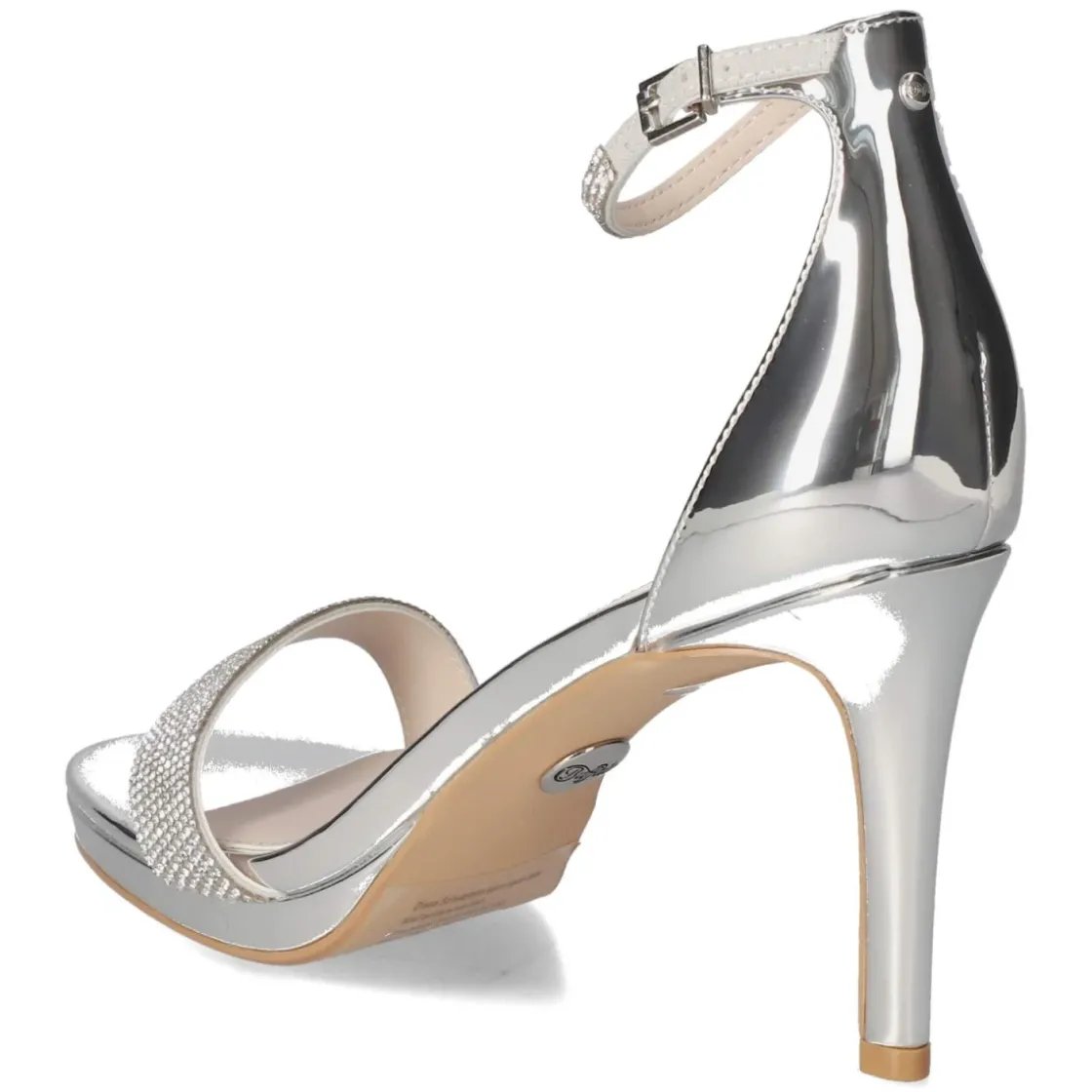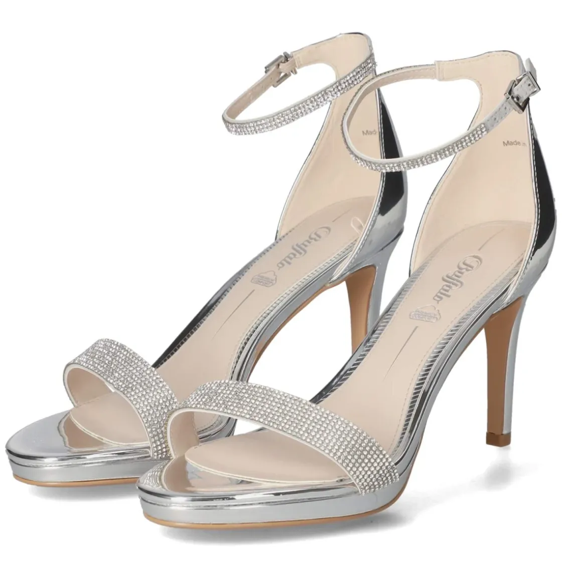 Die Sandaletten MONROE2 von Buffalo verbinden schimmernden Metallic-Glanz mit eleganter Linienführung. Der 9 cm hohe Pfennigabsatz streckt die Silhouette, während die offene Spitze und zarte Riemen mit funkelndem Glitzersteinbesatz das Licht effektvoll einfangen. Für sicheren Halt sorgt eine verstellbare Schnalle mit Elastikeinsatz; das weich gepolsterte Fußbett bietet angenehmen Komfort bis in die späten Stunden. Obermaterial aus Textil und Synthetik, eine pflegeleichte Decksohle aus Synthetik und die reguläre Passform unterstreichen die Alltagstauglichkeit dieser Abendsandale. Vegan gefertigt und PETA-Approved steht das Modell für zeitgemäßen Glamour ohne Kompromisse. Modetipp: in Kombination mit einem fließenden Slipdress in Eisnuancen und filigranem Silberschmuck entsteht ein moderner Red-Carpet-Look.