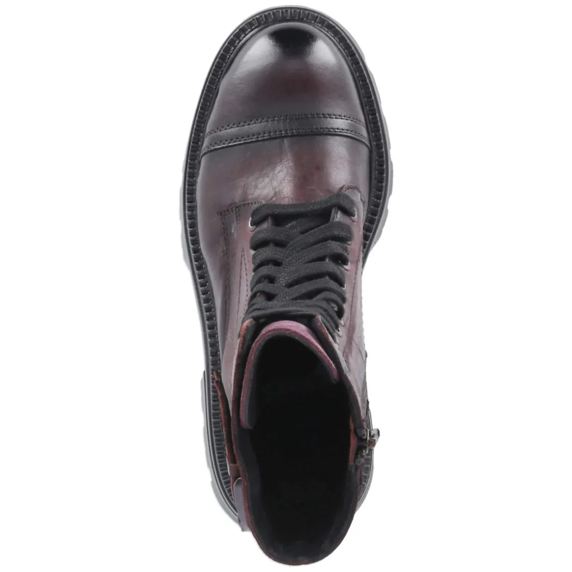 Diese Biker Boots von Bullboxer inszenieren robusten Charakter in dunklem Weinrot. Langlebiges Glattleder verleiht dem Schaft mit ca. 19 cm Höhe und rund 25 cm Umfang Formstabilität, während drei rückseitige Riemen mit Schnallen und markante Ziernähte den Look prägen. Der 5 cm hohe Blockabsatz und die rutschfeste Profilsohle sorgen für standfeste Traktion, die runde Spitze mit Toe Cap bringt lässige Biker-DNA. Innen punktet ein gepolstertes Fußbett, die Decksohle aus Synthetik und ein zusätzlicher Reißverschluss neben der Schnürung ermöglichen komfortables An- und Ausziehen. Farbe Rot mit weinroter Tiefe macht Übergangs-Outfits ausdrucksstark. Modetipp: Wirkt besonders stark zu Lederleggings und Oversize-Strick in Cremetönen oder mit Midi-Satinrock und derben Wollmänteln.