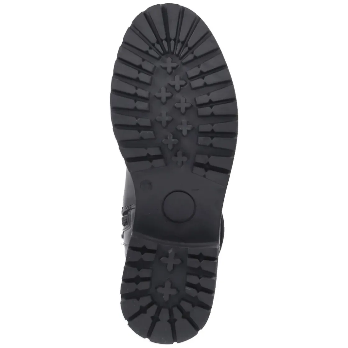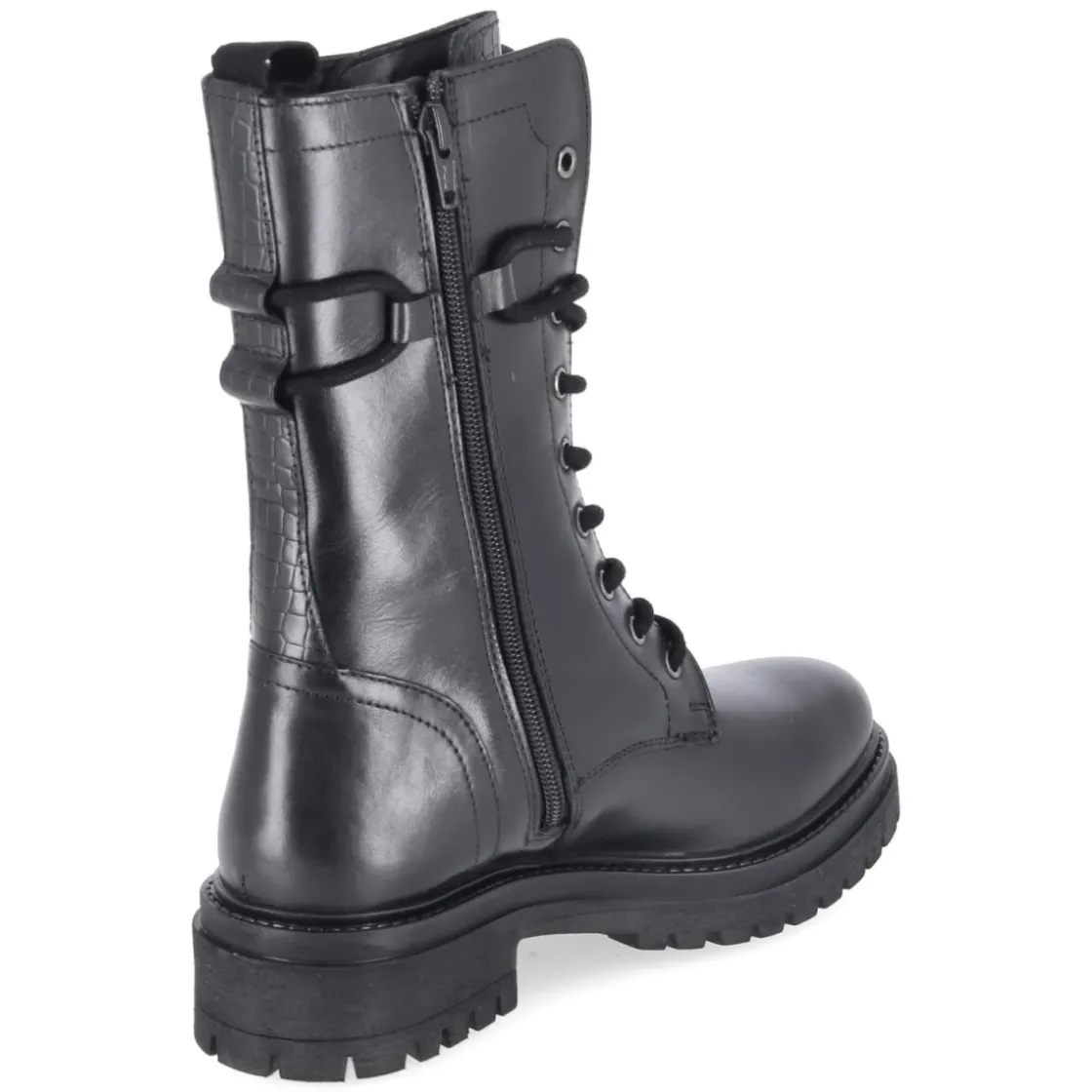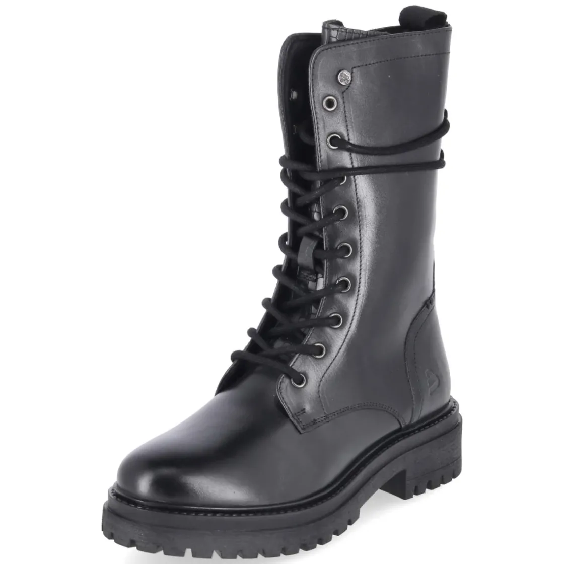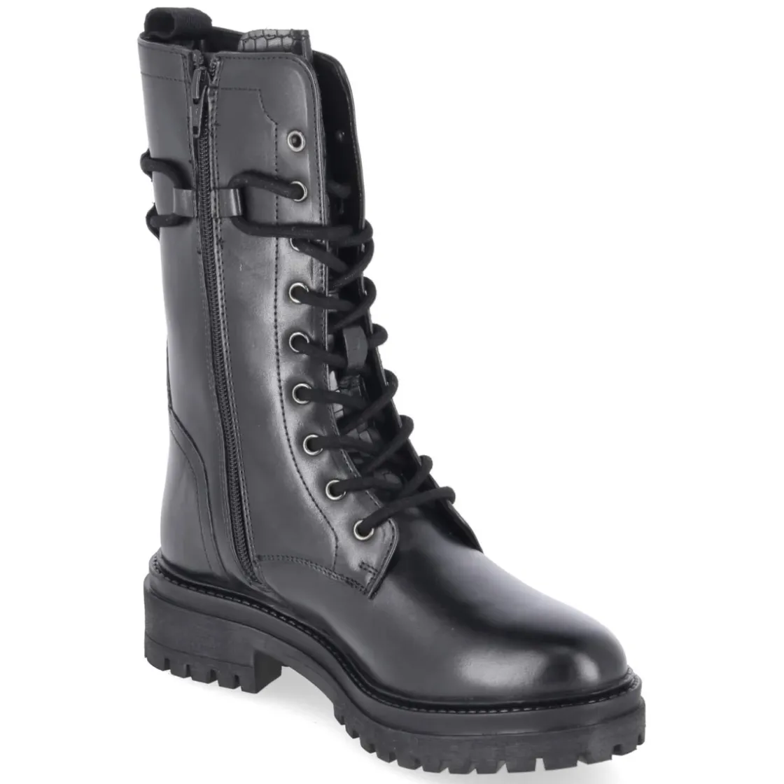 Der Bullboxer Schnürstiefel verbindet robusten Combat-Boot-Charme mit femininer Alltagstauglichkeit. Glattes Echtleder und eine verstärkte Ferse sorgen für langlebige Formstabilität, während die runde Spitze und der 4,5 cm hohe Blockabsatz ein komfortables Abrollen ermöglichen. Der Schaft misst etwa 23 cm in der Höhe und rund 24 cm im Umfang, ideal für eine definierte Silhouette ohne einzuengen. Ein zusätzlicher Reißverschluss neben der Schnürung erleichtert den Einstieg, die rutschfeste Profilsohle bietet verlässlichen Grip. Leichtes Futter wärmt an kühlen Tagen, die Decksohle aus Leder unterstützt ein angenehmes Fußklima. Dezente Reptilprägung an Zunge und Fersenriemen setzt einen modernen Akzent. Fällt normal aus. Modetipp: Mit feiner Strumpfhose, Minikleid und Oversize-Wollmantel entsteht ein spannender Kontrast zwischen derben Boots und eleganter Linie.