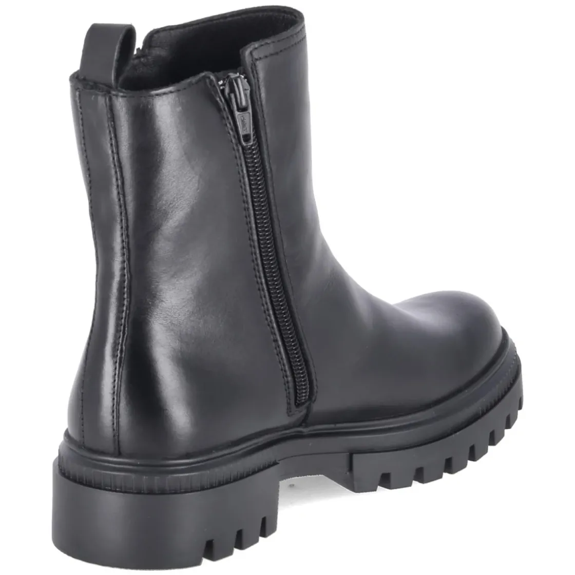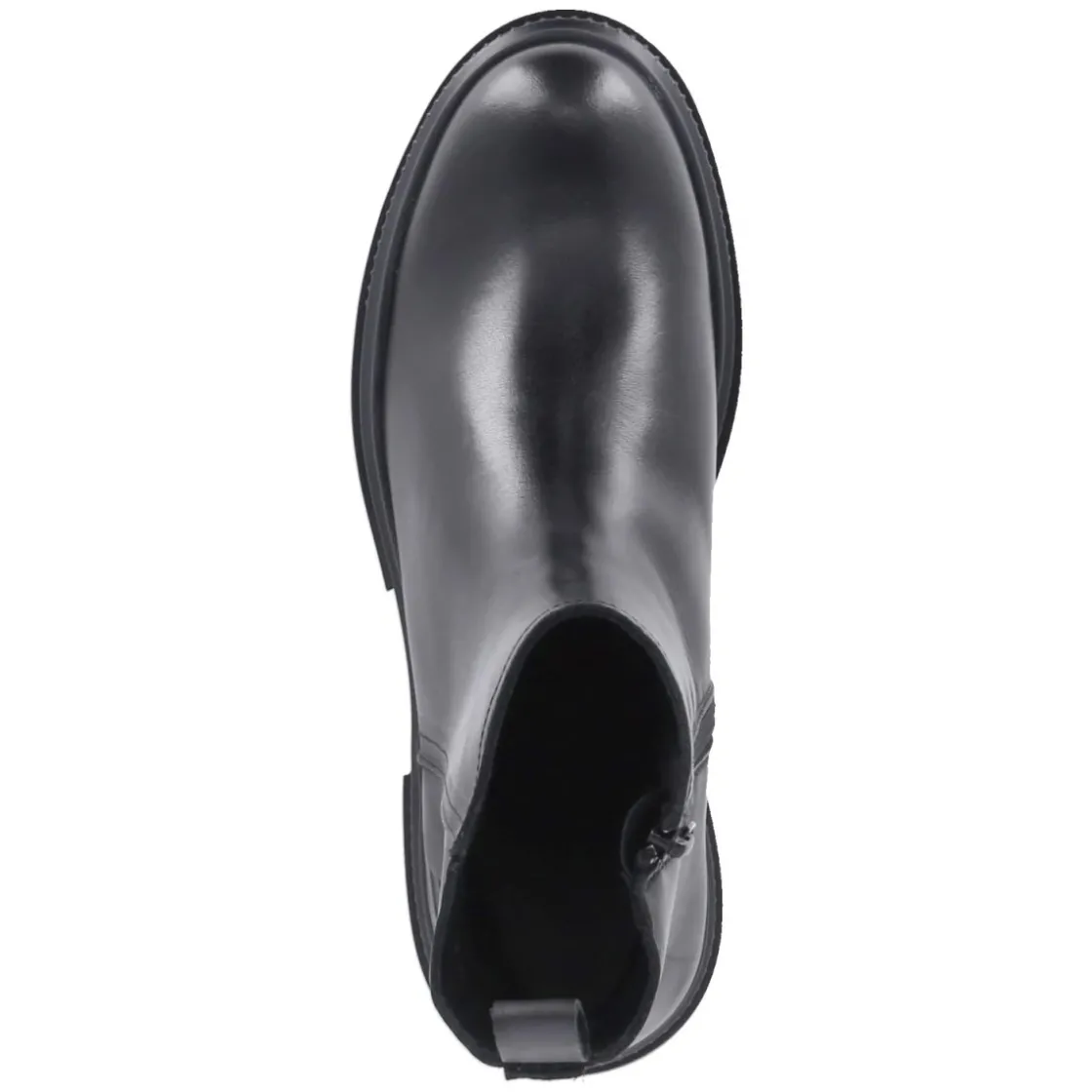 Diese Stiefeletten von Bullboxer vereinen zeitlose Schlichtheit mit funktionalen Details. Das Obermaterial aus schwarzem Glattleder zeigt eine hochwertige Anmutung und punktet durch langlebiges Echtleder. Die runde Schuhspitze wirkt modern und sorgt für angenehme Zehenfreiheit, während der 4 cm hohe Blockabsatz stabilen Halt im Alltag bietet. Ein seitlicher Reißverschluss und die praktische Anziehlasche erleichtern den Einstieg, das gepolsterte Fußbett erhöht den Tragekomfort auch an langen Tagen. Die flexible, rutschfeste Profilsohle gibt Sicherheit auf glatten Böden, der verstärkte Fersenbereich unterstützt die Form und Haltbarkeit. Der Größenhinweis fällt normal aus und macht die Wahl unkompliziert. Modetipp: Zu einem monochromen Outfit mit cropped Straight-Jeans und Wollmantel getragen entsteht ein eleganter City-Look, der vom Office bis zum Dinner überzeugt.