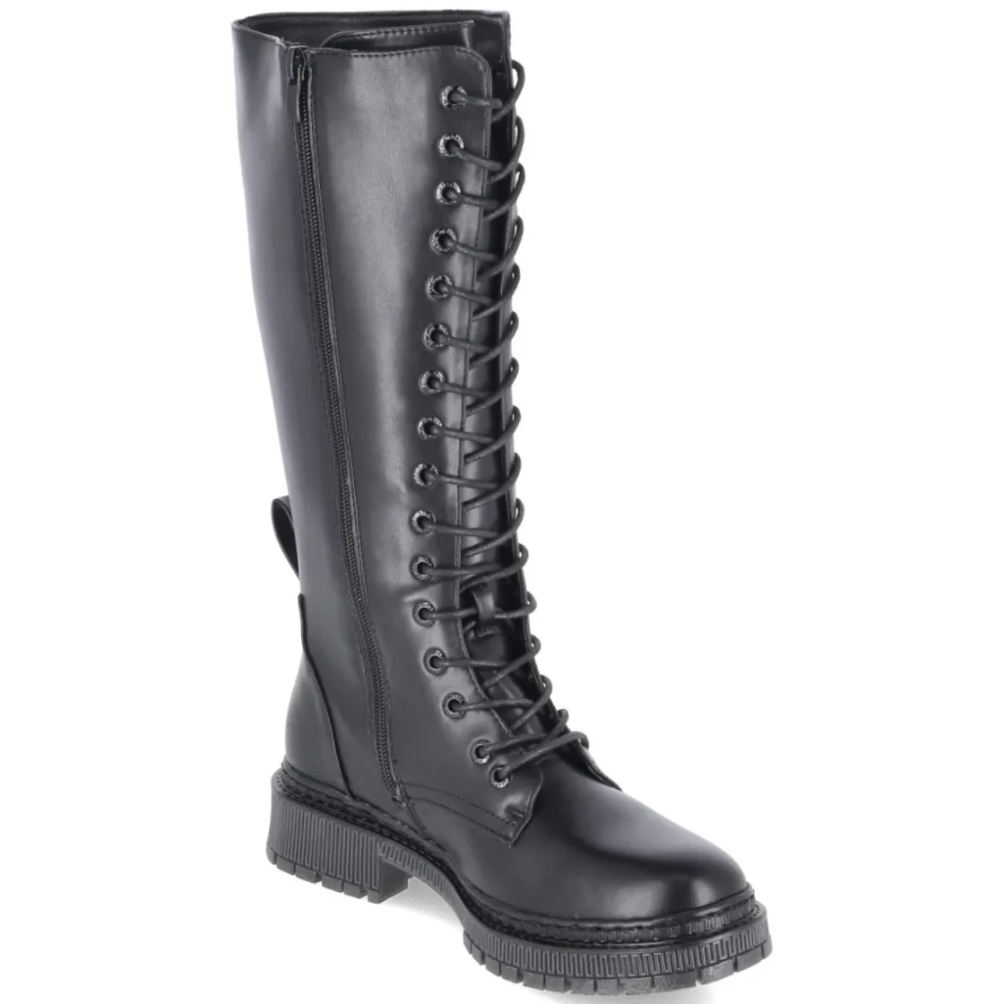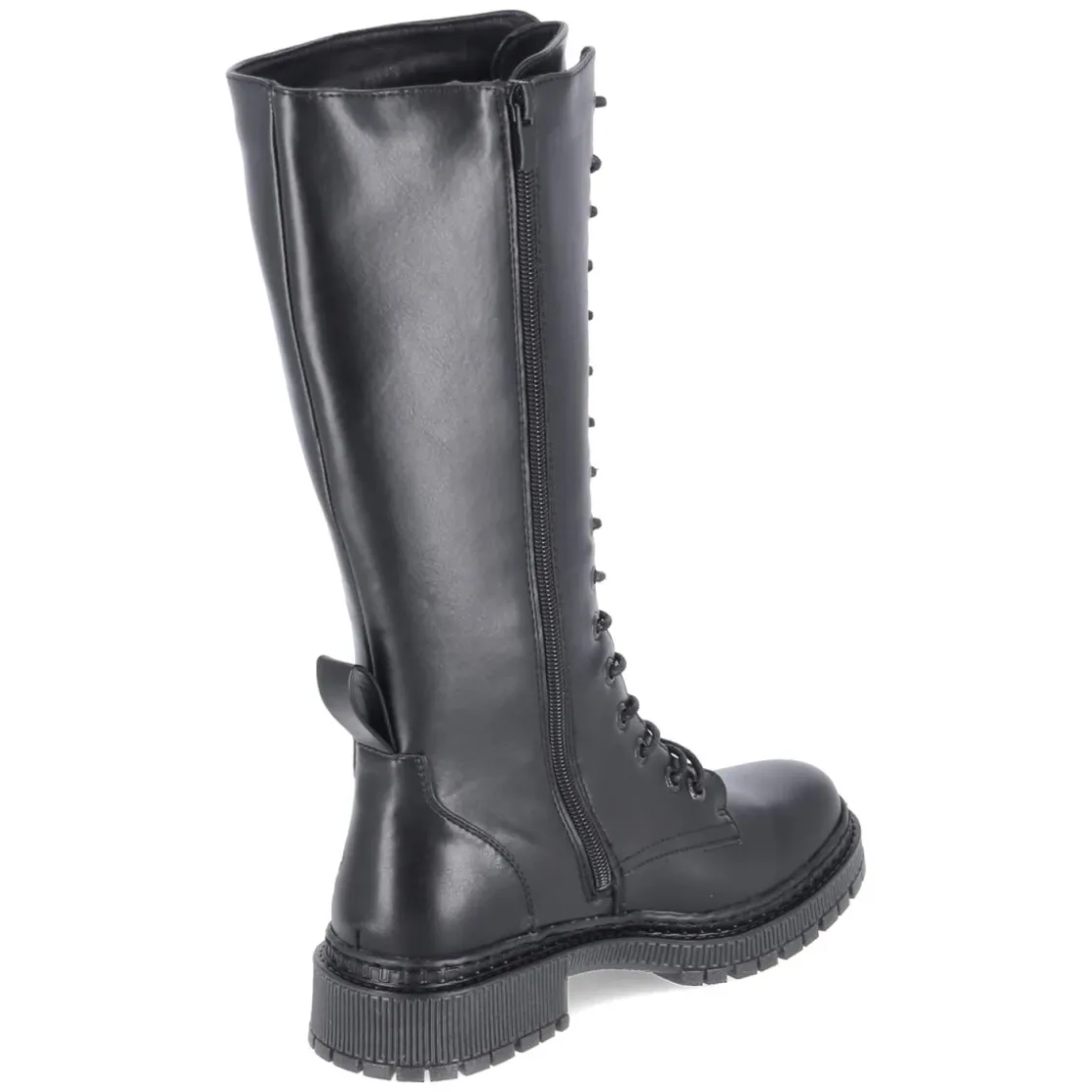 Der schwarze Dockers Schnürstiefel vereint lässige Robustheit mit komfortablen Details. Der 4 cm hohe Blockabsatz sorgt für einen stabilen Auftritt, während der Schaft mit ca. 31 cm Höhe und etwa 36 cm Umfang eine schmeichelnde Silhouette bietet. Das pflegeleichte Synthetik-Obermaterial präsentiert sich unempfindlich im Alltag, die Synthetik-Decksohle und das weich gepolsterte Fußbett erhöhen den Tragekomfort. Schnürung und seitlicher Reißverschluss ermöglichen einen unkomplizierten Einstieg sowie eine präzise Anpassung. Eine rutschfeste Profilsohle gibt Halt, der verstärkte Fersenbereich und die Anziehlasche erhöhen die Langlebigkeit. Die runde Spitze und die normal ausfallende Passform machen den Stiefel vielseitig kombinierbar. Modetipp: Mit Strickkleid, blickdichter Strumpfhose und Oversize-Mantel entsteht ein moderner Kontrast aus Femininität und Utility-Charme.