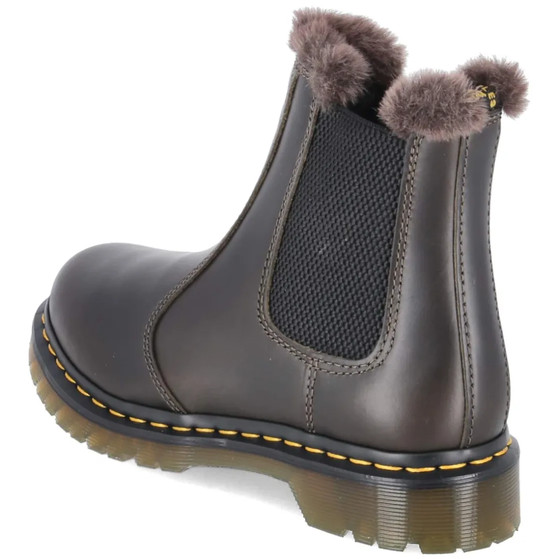 Der Dr. Martens Chelsea Boot 2976 LEONORE vereint ikonisches Design und wintertauglichen Komfort. Das Obermaterial aus langlebigem Glattleder zeigt sich in einem satten Braun mit Markendetails, während zwei große, seitliche Elastikeinsätze und die praktische Anziehlasche den bequemen Einstieg ohne Verschluss ermöglichen. Weiches, warmes Kunstfell und Warmfutter umschließen den Fuß, die textile Decksohle und das herausnehmbare Wechselfußbett sorgen für angenehme Dämpfung. Die runde Spitze und der 3 cm hohe Blockabsatz bieten Alltagstauglichkeit, die rutschfeste Profilsohle liefert Halt auf kaltem Untergrund. In normaler Passform konzipiert, begleitet der 2976 LEONORE Erwachsene stilsicher durch die Saison. Modetipp: Zu einem dunklen Strickkleid, blickdichten Strümpfen und einem oversized Wollmantel entsteht ein mühelos eleganter Look, der die dunkle Braunnuance harmonisch aufgreift.