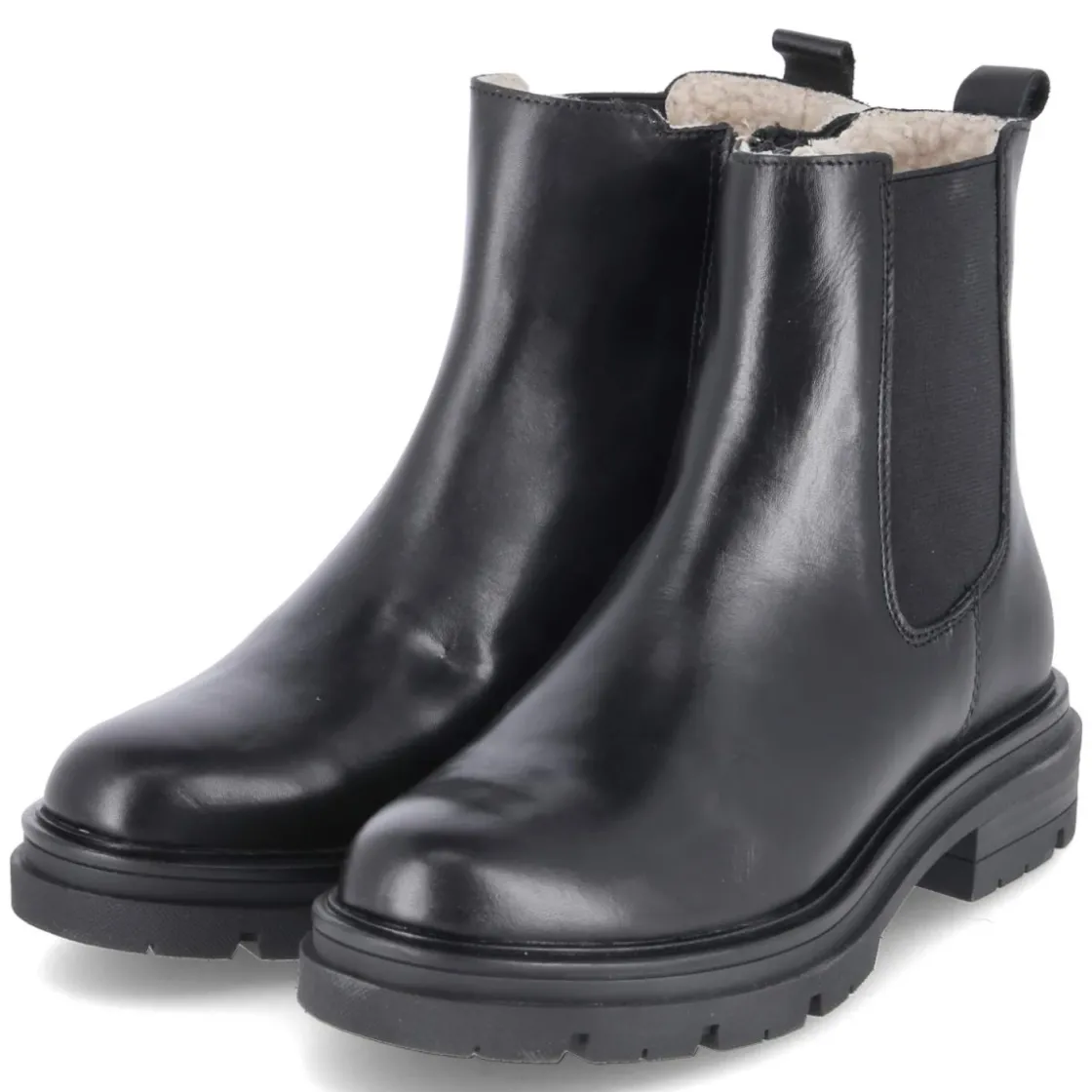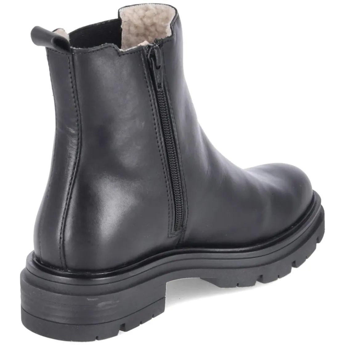 Die Chelsea Boots von Fräulein Frida verbinden zeitlose Eleganz mit zuverlässigem Komfort. Das schwarze Glattleder zeigt eine fein polierte Oberfläche, die dank langlebigem Echtleder formstabil bleibt und mit jedem Tragen an Charakter gewinnt. Ein 4 cm hoher Blockabsatz sorgt für angenehme Höhe und sicheren Stand, unterstützt von einer rutschhemmenden Profilsohle. Der seitliche Elastikeinsatz am Spann ermöglicht flexible Bewegungen, während der Reißverschluss das An- und Ausziehen erleichtert. Eine weiche Fütterung im Schaft, die Lederdecksohle sowie der verstärkte Fersenbereich erhöhen den Tragekomfort im Alltag. Die abgerundete Schuhspitze verleiht dem Design eine feminine Note, die Anziehlasche setzt einen funktionalen Akzent. Größenhinweis: fällt normal aus. Modetipp: zu Cropped-Jeans und Oversize-Blazer für einen modernen City-Look, oder mit Midikleid und Strickmantel für einen eleganten Kontrast.