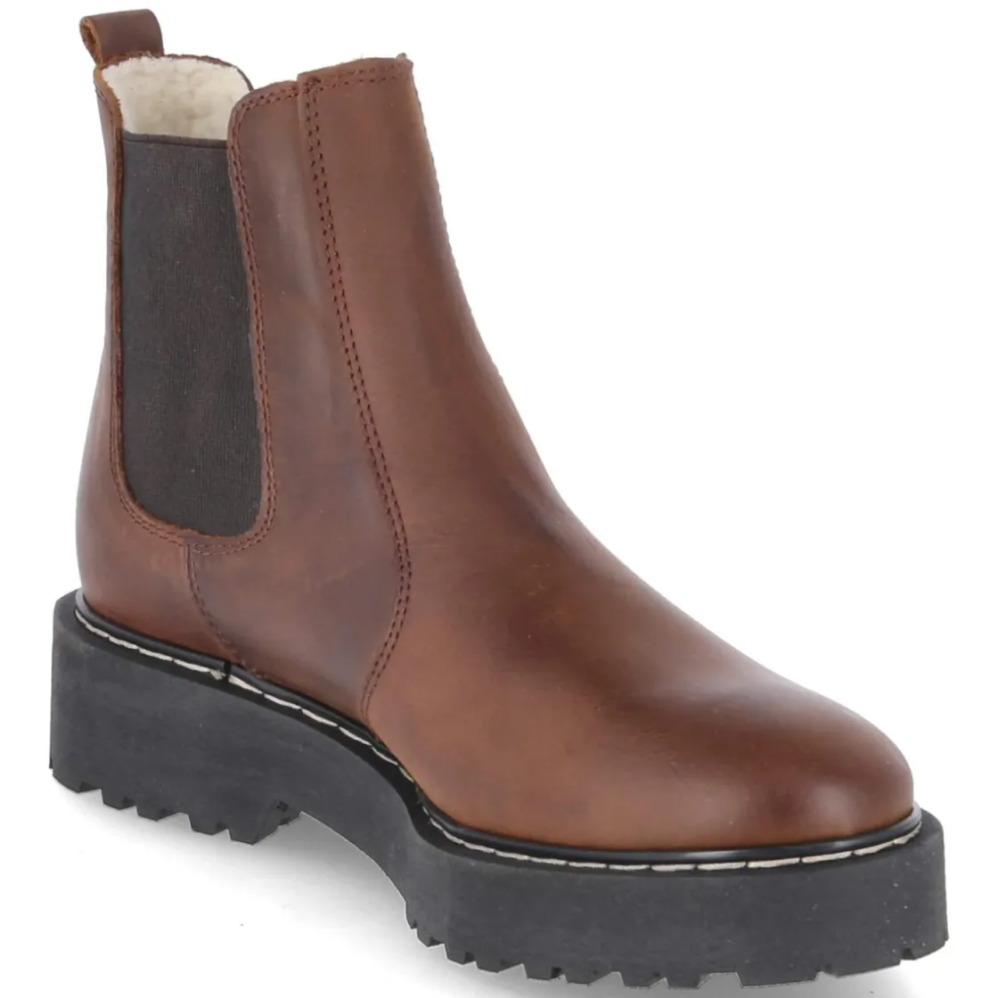 Diese Chelsea Boots von Fräulein Frida verbinden klassischen Stil mit zuverlässiger Funktion für kalte Tage. Glattes, langlebiges Echtleder in warmem Braun trifft auf einen stabilen Blockabsatz von 3,5 cm, der Alltagstauglichkeit und eleganten Auftritt vereint. Das weiche Warmfutter hält angenehm warm, während die textile Decksohle komfortables Tragegefühl unterstützt. Zwei seitliche Elastikeinsätze und eine praktische Anziehhilfe ermöglichen den unkomplizierten Einstieg ganz ohne Verschluss. Die rutschfeste Sohle bietet Trittsicherheit, der verstärkte Fersenbereich Struktur und Halt. Mit runder Spitze und normal ausfallender Passform wird Komfort großgeschrieben. Modetipp: Besonders stimmig zu Strickkleid und Wollmantel in Naturtönen sowie blickdichter Strumpfhose für einen harmonischen, urbanen Winterlook.