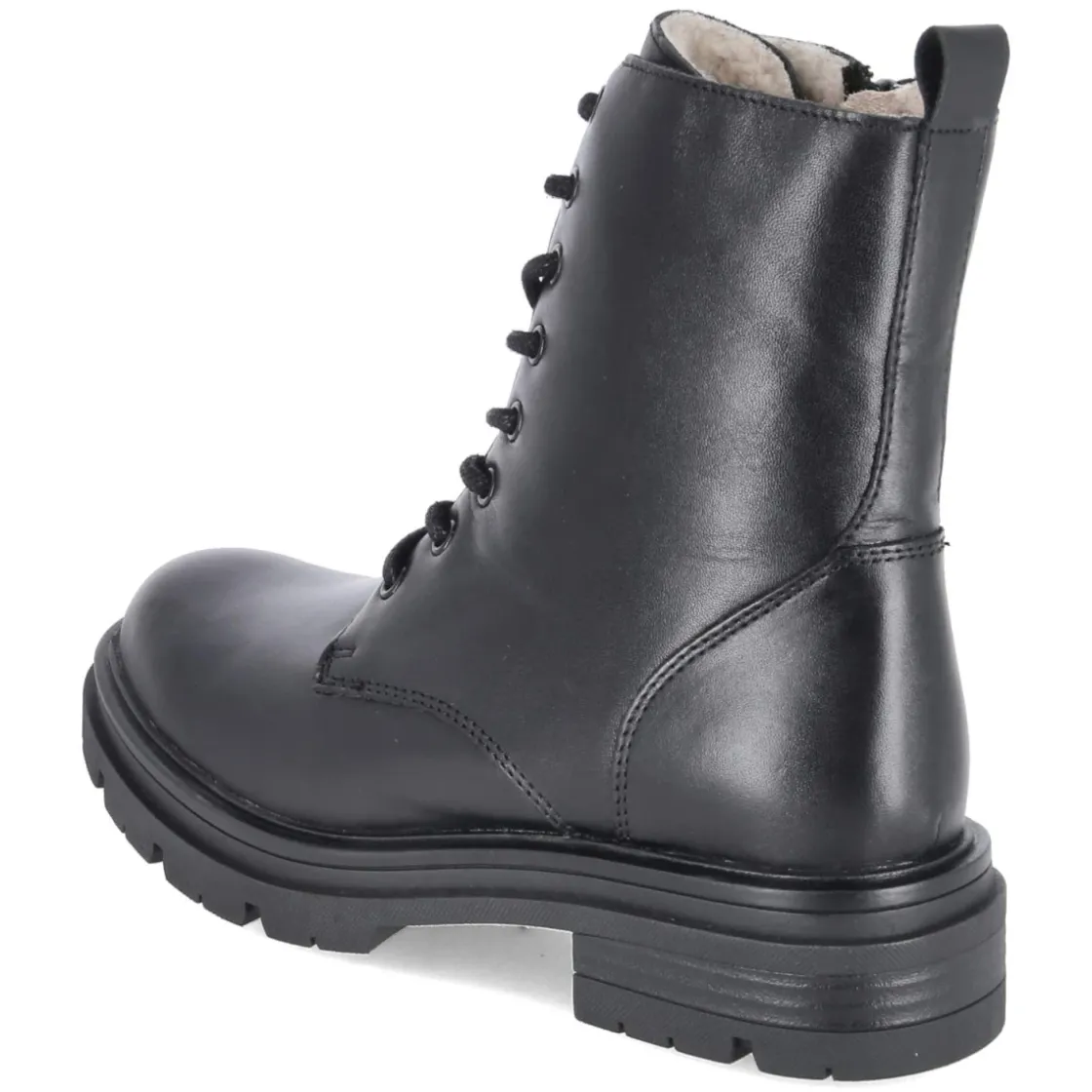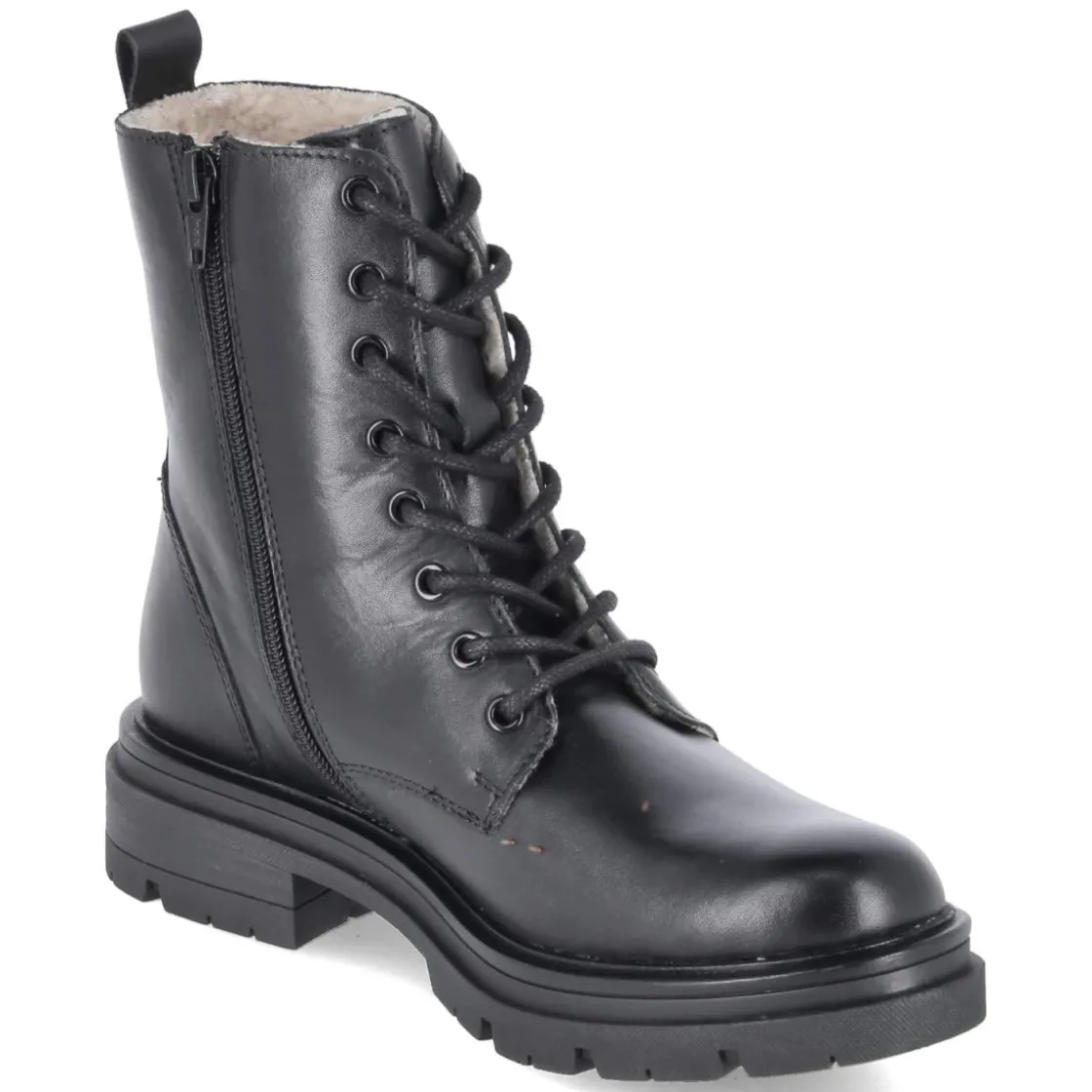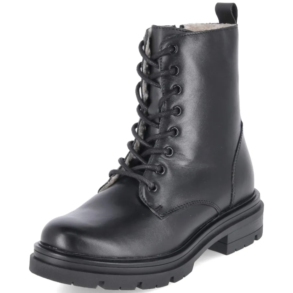 Der Schnürboot von Fräulein Frida verbindet klassische Linien mit robuster Alltagstauglichkeit. Schwarzes Glattleder, runde Spitze und ein 4 cm hoher Blockabsatz sorgen für eine zeitlose Silhouette mit stabilem Auftritt. Die Decksohle aus Leder bietet ein angenehmes Fußklima, während der weich gefütterte Schaft und der verstärkte Fersenbereich komfortablen Halt geben. Dank Schnürung lässt sich der Sitz präzise regulieren, der seitliche Reißverschluss ermöglicht schnelles An- und Ausziehen, unterstützt von der praktischen Anziehlasche. Eine markante Profilsohle gewährleistet Trittsicherheit in der Stadt und auf nassem Untergrund. Das Modell fällt normal aus und erweist sich als vielseitiger Begleiter von Büro bis Freizeit. Modetipp: Besonders harmonisch wirkt der Boot zu einem Wollmantel, Straight-Leg-Jeans und Feinstricksocken, alternativ zum Midikleid mit blickdichter Strumpfhose.