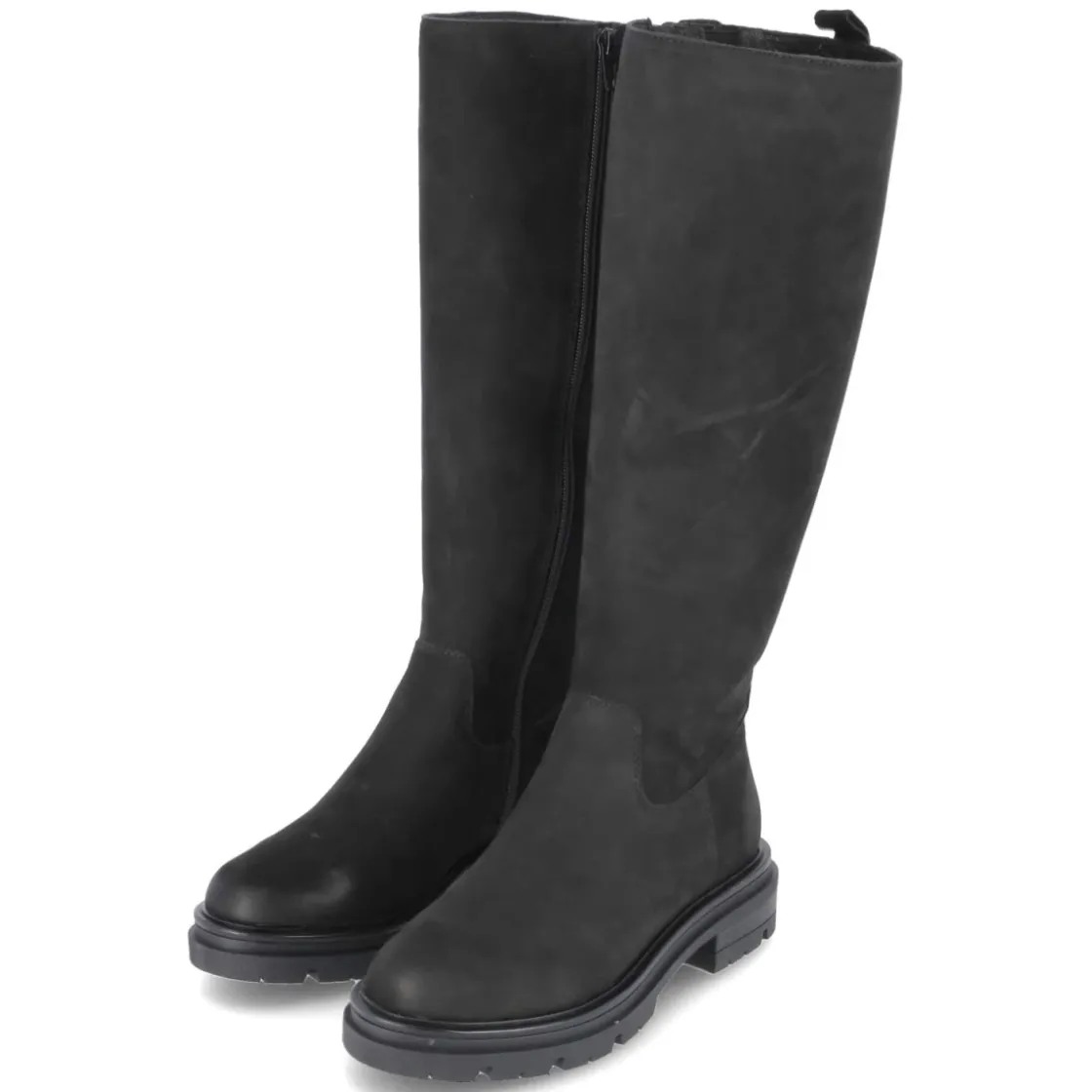 Der Stiefel von Fräulein Frida setzt auf zeitlose Eleganz in tiefem Schwarz und eine Form, die alltagstauglichen Komfort mit femininer Silhouette verbindet. Das Obermaterial aus Rauleder zeigt eine samtige Oberfläche, die dem Look Tiefe verleiht. Ein 4,5 cm hoher Blockabsatz sorgt für stabilen Halt, die flexible, rutschfeste Profilsohle unterstützt bei jedem Schritt. Innen umschließt ein leichtes Futter die Beine angenehm an kühlen Tagen, die Decksohle aus Leder überzeugt mit wertigem Tragegefühl. Praktisch: Reißverschluss, Anziehlasche und ein kleiner Elastikkeil am oberen Schaft für etwas Spiel, dazu ein verstärkter Fersenbereich. Mit rund zulaufender Spitze und einem Schaft von ca. 39 cm Höhe bei 36 cm Umfang passt das Modell zu vielen Looks und fällt größengetreu aus. Modetipp: Zu Midikleid, Strick und Wollmantel entsteht ein moderner Kontrast; alternativ zu Skinny-Jeans und Oversize-Blazer für einen urbanen Auftritt.