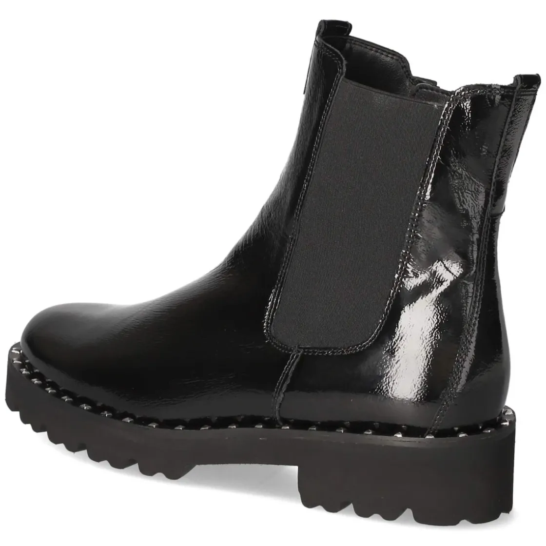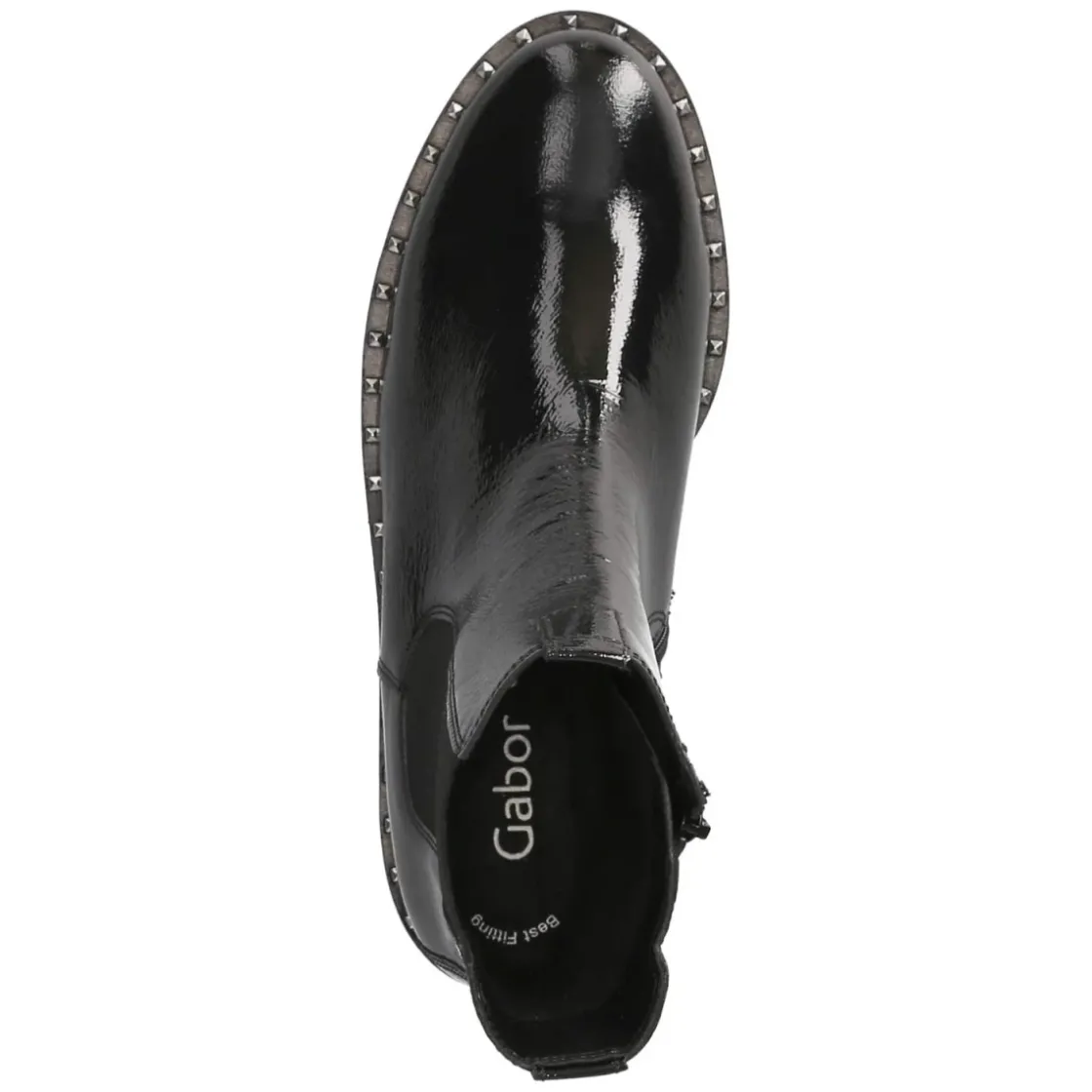 Der Chelsea Boot von Gabor setzt mit edler Lackoptik in Schwarz ein klares Stilstatement. Der 3 cm hohe Blockabsatz sorgt zusammen mit der flexiblen Laufsohle für angenehmen Halt im Alltag, während die runde Spitze Komfort bietet. Ein seitlicher Reißverschluss und der Elastikeinsatz am Schaft ermöglichen bequemes An- und Ausziehen, zwei kleine Anziehhilfen unterstützen zusätzlich. Leichtes Textilfutter wärmt an kühlen Tagen, die textile Wechseldecksohle passt sich an und lässt sich bei Bedarf gegen eigene Einlagen austauschen. Ziernähte und ein silberfarbener Nietenbesatz entlang der Laufsohle verleihen eine moderne Note. Das Modell fällt normal aus und überzeugt als verlässlicher Begleiter zwischen Büro und Freizeit. Modetipp: Besonders wirkungsvoll zu cropped Denim, Feinstrick und einem klassischen Wollmantel, um den Glanz des Lackleders in den Fokus zu rücken.