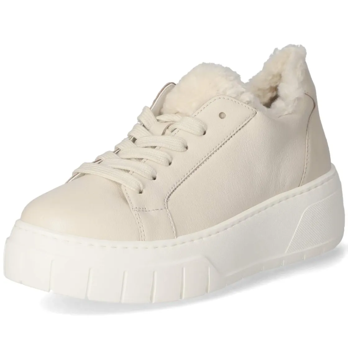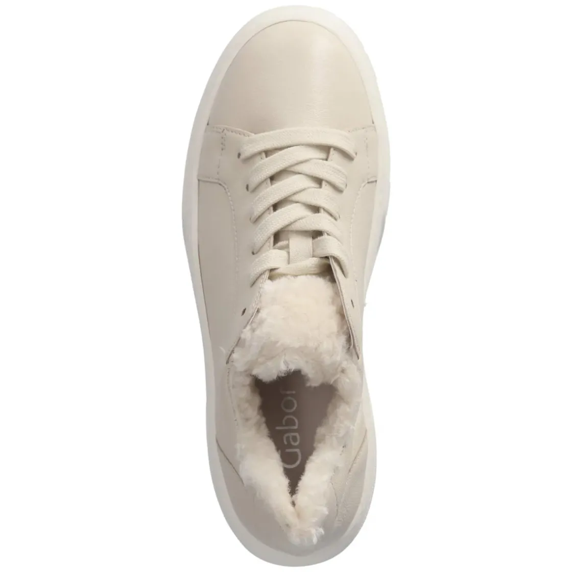 Der Low Sneaker von Gabor in sanftem Beige vereint sportliche Linie mit eleganter Zurückhaltung. Glattes, atmungsaktives Echtleder umschließt den Fuß angenehm, während die runde Spitze und ein 5 cm hohes Plateau für eine moderne Silhouette und komfortable Höhe sorgen. Die flexible, rutschhemmende Laufsohle bietet zuverlässigen Grip im Alltag, der verstärkte Fersenbereich zusätzliche Stabilität. Für individuellen Sitz sorgt die Schnürung, das komfortable Wechselfußbett lässt sich bei Bedarf austauschen. Die lederne Decksohle unterstützt ein wertiges Fußklima, Einstieg und Zunge in Felloptik setzen einen weichen, cozy Akzent. Fällt größengetreu aus und begleitet mühelos vom Büro bis zum Stadtbummel. Modetipp: Ton-in-Ton mit beiger Wollhose und cremefarbenem Strick entsteht ein ruhiger Look, der mit einer goldenen Gliederkette edel abgerundet wird.