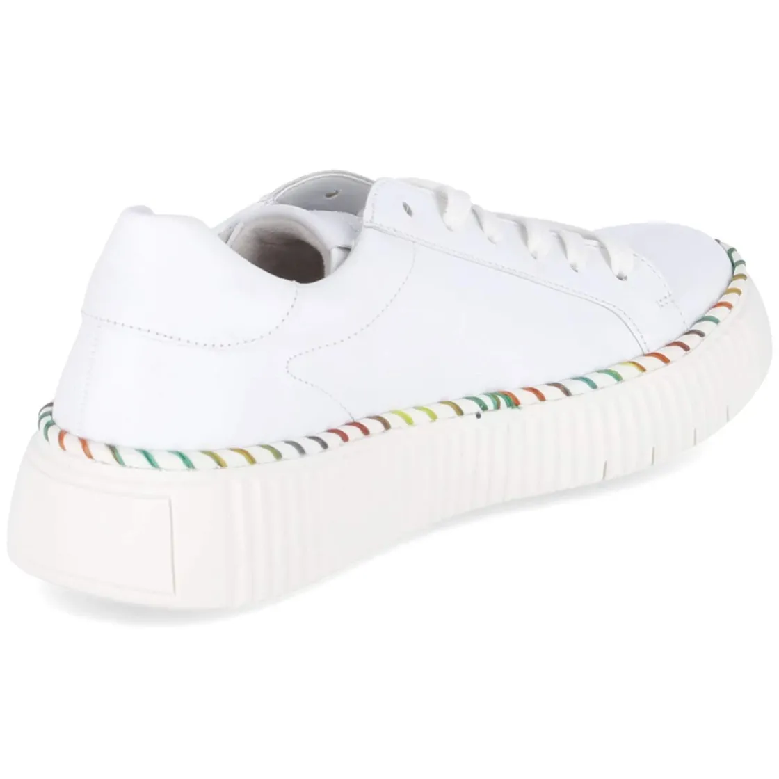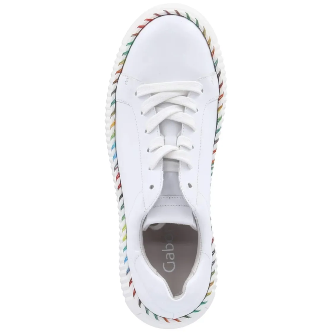 Der Low Sneaker von Gabor in strahlendem Weiß verbindet zeitgemäßes Design mit durchdachtem Komfort. Die 4 cm hohe Plateausohle sorgt für sanfte Höhe und ein stabiles Laufgefühl, ihre rutschhemmende Profilierung gibt Sicherheit im Alltag. Markantes Detail ist die bunte Naht, die dem cleanen Look eine frische Note verleiht. Glattes, langlebiges Echtleder umschließt den Fuß angenehm, die runde Schuhspitze bietet ausreichend Raum. Schnürsenkel erlauben eine präzise Anpassung, während gepolsterter Einstieg, verstärkter Fersenbereich und das gepolsterte, herausnehmbare Fußbett den Tragekomfort erhöhen. Die pflegeleichte synthetische Decksohle rundet die Alltagstauglichkeit ab. Der Sneaker fällt normal aus und eignet sich als vielseitiger Begleiter für Damen. Modetipp: Zu Cropped-Jeans und einem cremefarbenen Stricktop entsteht ein minimalistischer Look, den die bunte Naht elegant akzentuiert.