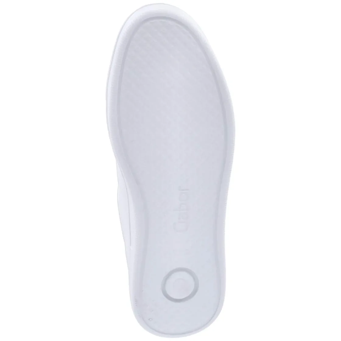 Der Low Sneaker von Gabor in strahlendem Weiß kombiniert puristisches Design mit durchdachtem Komfort. Weiches, langlebiges Echtleder in glatter Ausführung umschließt den Fuß mit einer rund zulaufenden Spitze, während der leicht gepolsterte Einstieg und das komfortable, gepolsterte Wechselfußbett aus Leder für ein angenehmes Klima sorgen. Praktisch wird es durch die Kombination aus Schnürung und zusätzlichem Reißverschluss, die ein schnelles An- und Ausziehen ermöglicht und dennoch individuellen Halt bietet. Die kräftigere Laufsohle mit leichtem Keil federt Schritte zuverlässig ab und schafft eine moderne Silhouette. Bunte, metallisch glänzende Highlights setzen dezente Akzente und geben dem cleanen Look eine frische Note. Die Passform fällt normal aus und eignet sich ideal für den täglichen Einsatz, ob in der City oder im Büro. Modetipp: Zu Cropped-Jeans und weißem Overshirt entsteht ein monochromes, sportlich-elegantes Ensemble.