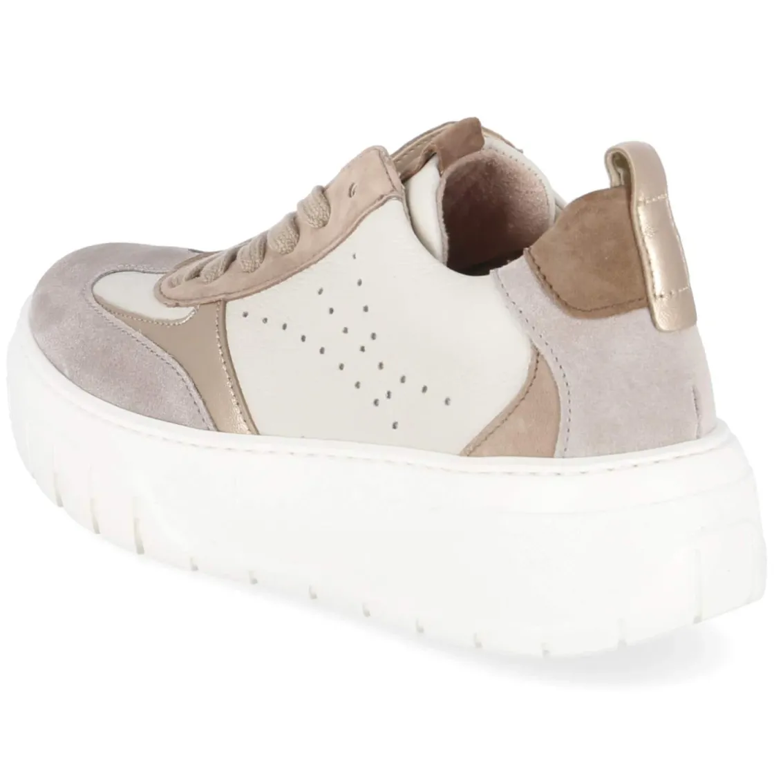Dieser Plateau-Sneaker von Gabor vereint einen stilvollen Ledermix mit moderner Optik und sorgt dank 5 cm hohem Plateau für eine zeitgemäße Silhouette. Das runde Leistenbild, die verstärkte Fersen- und Zehenpartie sowie der gepolsterte Einstieg schenken Halt und Komfort im Alltag. Feine Seitenlochung sorgt für angenehme Luftzirkulation, während die Anziehlasche das Hineinschlüpfen erleichtert. Besonders praktisch: das komfortable, recycelte Wechselfußbett, das bei Bedarf ausgetauscht werden kann und den umweltfreundlich gedachten Ansatz unterstreicht. Teile mit goldenem Glanz akzentuieren das Beige und verleihen urbanen Chic. Die Passform fällt normal aus, die Lederdecksohle schmeichelt dem Fuß. Modetipp: Mit lockerem Blazer, Cropped-Jeans und einer dezenten Crossbody-Tasche entsteht ein nachhaltiger City-Look, der Office und After-Work mühelos verbindet.