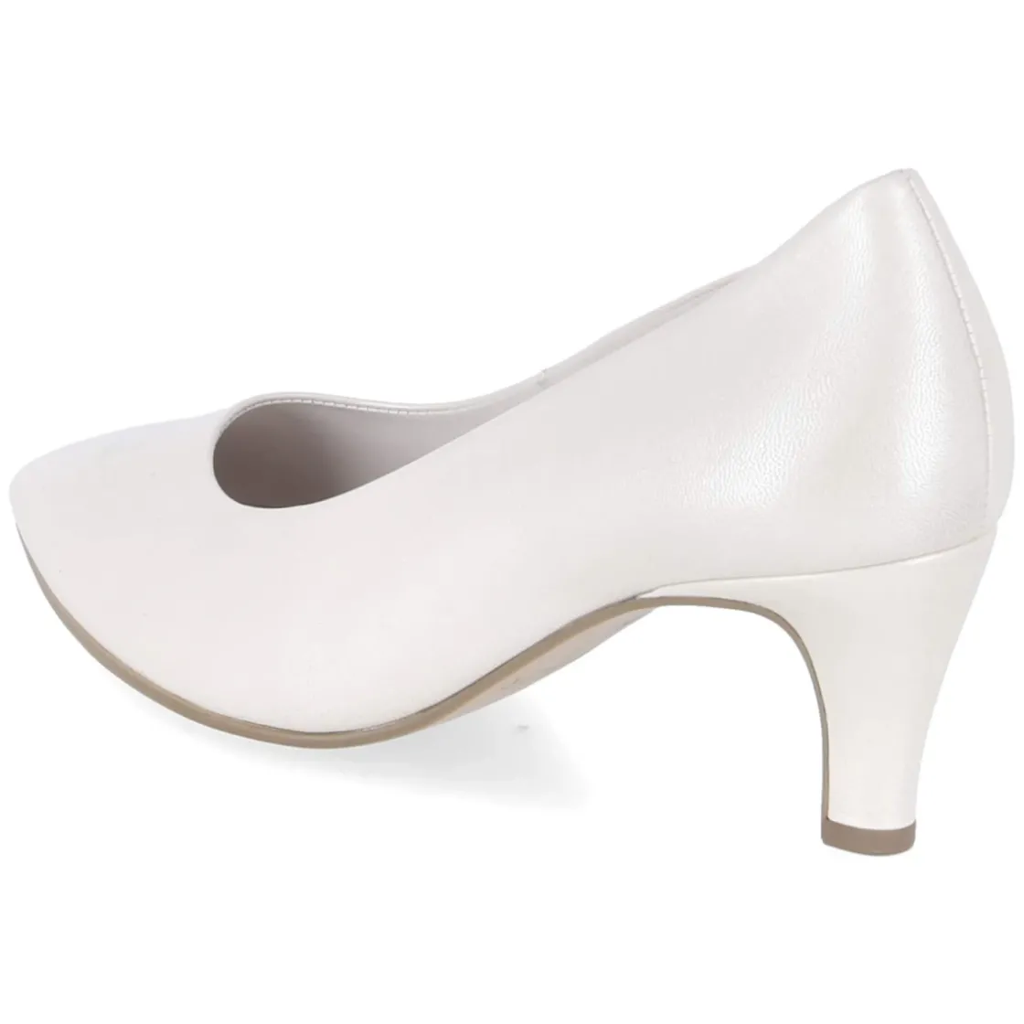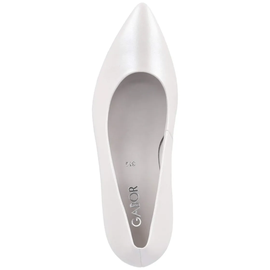 Dieser Pumps von Gabor vereint moderne Eleganz mit hohem Tragekomfort. Das Obermaterial aus hochwertigem Glattleder zeigt einen dezenten, perlmutartigen Schimmer, der die weiße Farbe nuanciert und jedem Look eine edle Note verleiht. Die runde Schuhspitze und die schlanke Linienführung sorgen für eine feminine Silhouette, während das gepolsterte Fußbett und die Decksohle aus Leder sanfte Dämpfung und ein angenehmes Klima bieten. Der 6 cm hohe Trichterabsatz streckt optisch das Bein, bleibt aber dank seiner Form stabil und alltagstauglich. Eine flexible Laufsohle unterstützt einen geschmeidigen Abrollvorgang, die Passform fällt normal aus. Das Design ohne Verschluss ermöglicht bequemes Hineinschlüpfen und einen aufgeräumten Look. Modetipp: Besonders harmonisch wirkt der Pumps zu einem cremefarbenen Hosenanzug oder einem Satinkleid in Elfenbein; eine perlenbesetzte Clutch verstärkt den feinen Glanz.