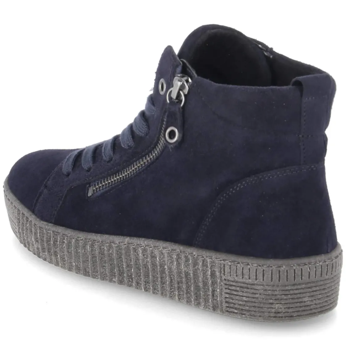 Die blauen Schnürstiefeletten von Gabor verbinden lässige Eleganz mit durchdachtem Komfort. Sehr weiches Rauleder legt sich sanft um den Fuß, die runde Spitze sorgt für eine zeitlose Silhouette. Dank Kombination aus Schnürsenkeln und praktischem Reißverschluss gelingt das An- und Ausziehen mühelos, während die Passform gemäß Größenhinweis verlässlich normal ausfällt. Innen überzeugt eine angenehme Textildecksohle, dazu bietet das komfortable, herausnehmbare Wechselfußbett flexible Anpassung – ideal auch für eigene Einlagen. Die verstärkte Ferse stabilisiert dezent, die flexible, rutschfeste Laufsohle trägt sicher durch Alltag und Freizeit. Das vielseitige Design punktet mit hervorragenden Kombinationsmöglichkeiten und macht die Stiefelette zum smarten Begleiter für viele Looks. Modetipp: Zu Cropped-Jeans und einem grob gestrickten Cardigan entsteht ein moderner, unaufgeregter City-Style.