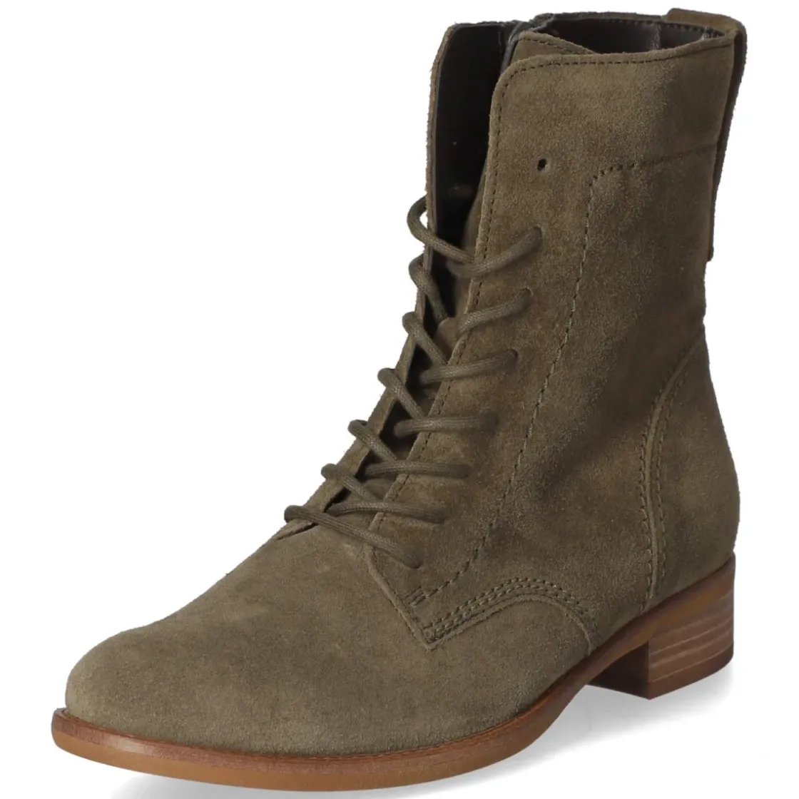 Diese Gabor Schnürstiefeletten vereinen urbane Lässigkeit mit durchdachtem Komfort. Das weiche Rauleder in intensivem Grün wirkt hochwertig und harmoniert mit der runden Schuhspitze sowie dem 3 cm hohen Blockabsatz für entspanntes Gehen. Atmungsaktives Echtleder sorgt für ein angenehmes Fußklima, während das gepolsterte, herausnehmbare Fußbett individuellen Ansprüchen gerecht wird. Schnürung und seitlicher Reißverschluss ermöglichen schnelles Anziehen und eine passgenaue Weite, unterstützt von verstärkter Ferse und praktischer Anziehhilfe. Die flexible, rutschfeste Sohle gibt sicheren Halt auf verschiedensten Untergründen. Mit Textildecksohle und dem Hinweis „fällt normal aus“ ist die Wahl der üblichen Größe empfehlenswert. Modetipp: Zu Cropped-Jeans und Oversize-Strick in Naturtönen getragen setzt das Grün einen frischen Akzent, ein gemusterter Schal rundet den Look ab.