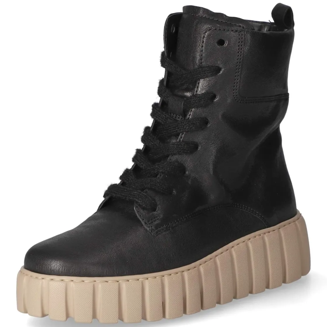 Gabor Schnürstiefeletten in Schwarz vereinen klare Linien und Komfort. Glattes, atmungsaktives Echtleder umschließt den Fuß weich, die runde Spitze bietet entspanntes Abrollen. Der 4‑cm‑Plateauabsatz bringt subtilen Höhengewinn und sorgt mit der rutschfesten Plateausohle für sicheren Stand auf nassem Asphalt. Klassische Schnürung erlaubt präzise Anpassung, ein seitlicher Reißverschluss erleichtert den Einstieg; ein zusätzlicher Zipper zeigt sich als praktisches Detail im Alltag. Das leichte Futter wärmt an kühlen Tagen, die textile Decksohle liegt angenehm an, das Wechselfußbett schafft Raum für eigene Einlagen. Verstärkte Ferse und Anziehlasche erhöhen Stabilität und Handhabung. Die Passform fällt normal aus und richtet sich an Erwachsene. Modetipp: Mit gerader Anzughose und Wollmantel entsteht ein moderner City‑Look, der die klare Silhouette der Stiefelette betont.