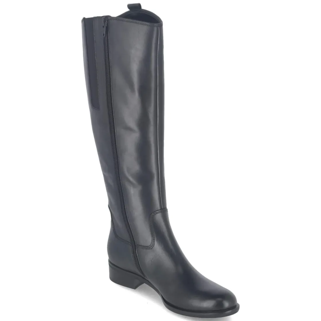 Zeitloser Auftritt mit funktionalen Details: Der Gabor Damen-Stiefel in klassischem Schwarz setzt auf hochwertiges Glattleder und ein langlebiges Echtleder-Finish. Der 3 cm hohe Blockabsatz bietet solide Stabilität, während die runde Schuhspitze und die normale Passform für angenehmen Platz und Komfort sorgen. Ein seitlicher Reißverschluss erleichtert das Anziehen, ergänzt von einer praktischen Anziehlasche. Der Schaft in Weite M misst ca. 38 cm in der Höhe und ca. 36 cm im Umfang; ein Elastikeinsatz am oberen Schaft verbessert den Sitz. Die textile Decksohle liegt weich am Fuß, das komfortable Wechselfußbett lässt sich bei Bedarf austauschen. Das dezente Reitstiefel-Design harmoniert mit Business- wie Freizeitlooks und wird durch die verstärkte Ferse formstabil begleitet. Modetipp: Besonders elegant wirkt der Stiefel zu Midikleid und Wollmantel, abgestimmt mit einem schmalen Ledergürtel in Ton-in-Ton-Optik.