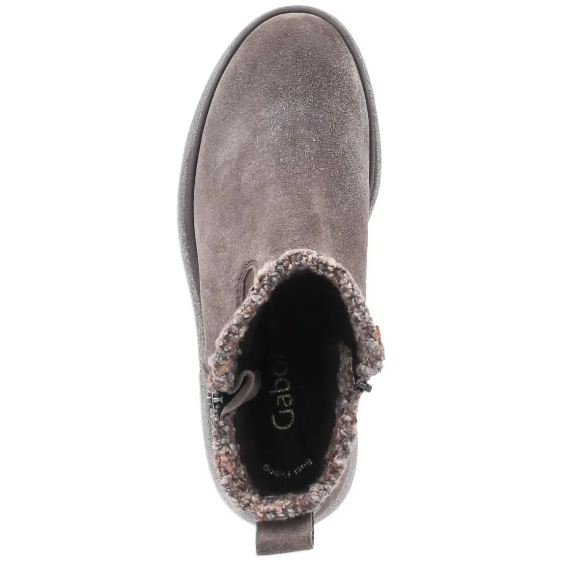 Diese Damen-Stiefeletten von Gabor vereinen zeitlose Alltagstauglichkeit mit feinen Details. Das langlebige Rauleder in Taupe verleiht dem Obermaterial eine elegante Struktur, während die runde Schuhspitze und der 4 cm hohe Blockabsatz für Komfort und Stabilität stehen. Eine flexible, griffige Laufsohle unterstützt sicheren Halt, das weiche Fußbett und die Decksohle aus Textil sorgen für angenehmes Tragegefühl. Praktisch sind der seitliche Reißverschluss sowie ein zusätzlicher äußerer Reißverschluss zur Schafterweiterung, ergänzt durch Anziehlasche und verstärkte Ferse. Die Krempe in Strickoptik setzt einen modernen Akzent. Die Passform fällt normal aus und bietet vielfältige Kombinationsmöglichkeiten von lässig bis gepflegt. Modetipp: Zu Cropped-Jeans, Feinstrickpullover und einem Wollmantel entsteht ein harmonischer City-Look.