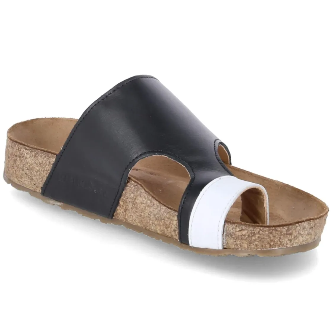 Der Zehentrenner ANKA von Haflinger verbindet puristische Formensprache mit durchdachter Funktion. Das Obermaterial aus langlebigem Glattleder präsentiert sich in tiefem Schwarz, während der kontrastierende weiße Zehenbereich einen markanten Akzent setzt. Die offene Schuhspitze und das gepolsterte, vorgeformte Tieffußbett mit Lederbezug sorgen für ein angenehm stützendes Tragegefühl, das im Alltag ebenso überzeugt wie auf Reisen. Eine rutschhemmende Laufsohle bietet verlässlichen Halt auf verschiedenen Untergründen, der Verzicht auf Verschlüsse betont die klare, moderne Optik. Die Deck- und Innensohle aus Leder schmiegt sich weich an, die Passform fällt normal aus und erleichtert die Größenwahl. Modetipp: Zu cropped Jeans und einem leichten Leinenhemd entsteht ein cleanes Sommerensemble; ein schwarzer Pediküre-Ton greift die Farbe des Leders auf und rundet den Look harmonisch ab.