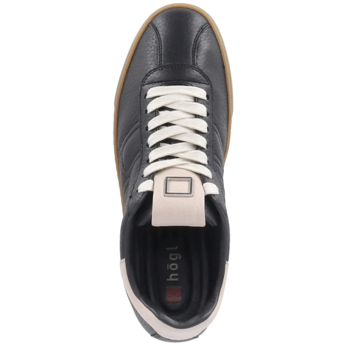 Der Low Sneaker von Högl zeigt eine moderne Optik mit klarer Linienführung und zeitlosen Details. Schwarzes Glattleder bildet die Basis, beige Highlights und eine seitliche, dezente Markenstickerei setzen subtile Akzente. Die runde Schuhspitze und der Schnürverschluss sorgen für einen klassisch-sportiven Look, während verstärkter Fersen- und Zehenbereich für zusätzliche Stabilität stehen. Langlebiges Echtleder trifft auf eine flexible, griffige Laufsohle, die zuverlässigen Halt im Alltag bietet. Innen überzeugt eine Decksohle aus Leder, das gepolsterte Wechselfußbett lässt sich individuell anpassen oder austauschen. Der Schuh fällt normal aus und richtet sich an Damen, die Komfort und Stil verbinden möchten. Modetipp: Besonders stimmig zu cropped Straight-Leg-Jeans, feinem Strick und einem beigen Trenchcoat, alternativ als ruhiger Gegenpol zu einer Monochrom-Optik in Schwarz mit goldfarbenen Accessoires.