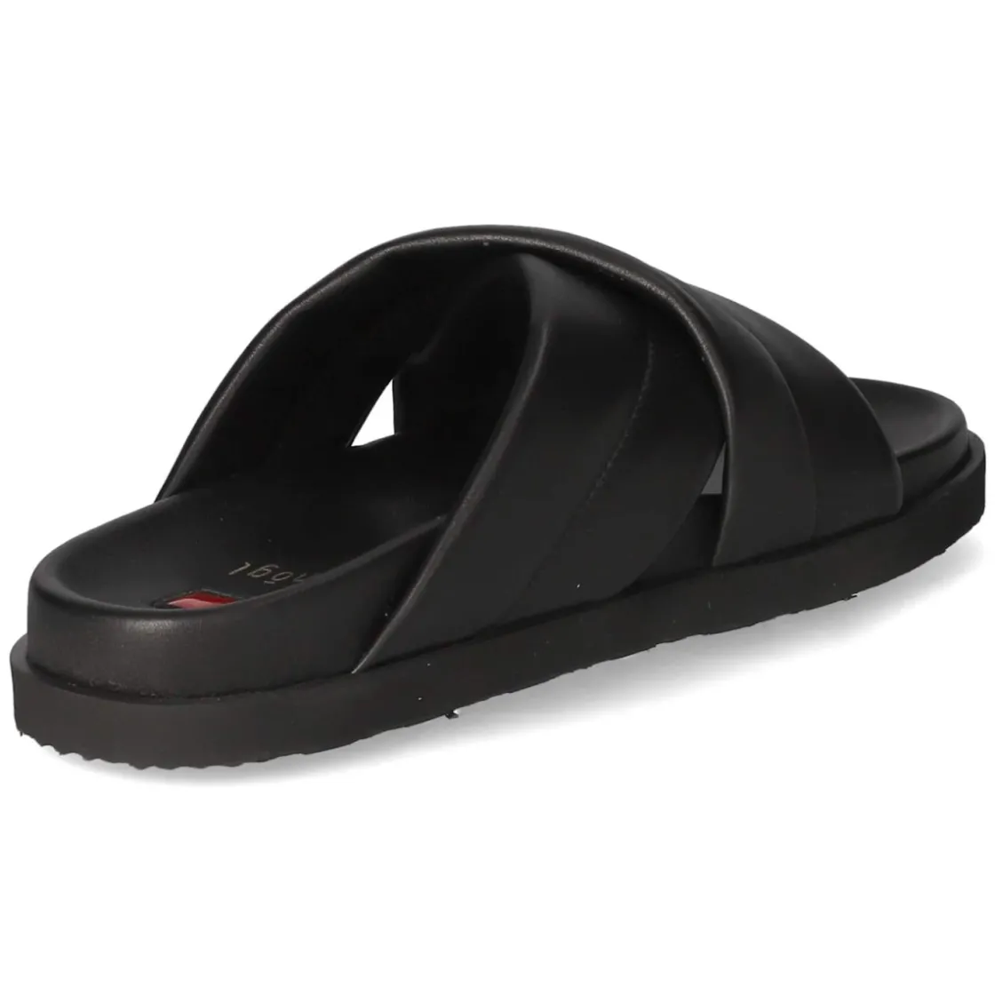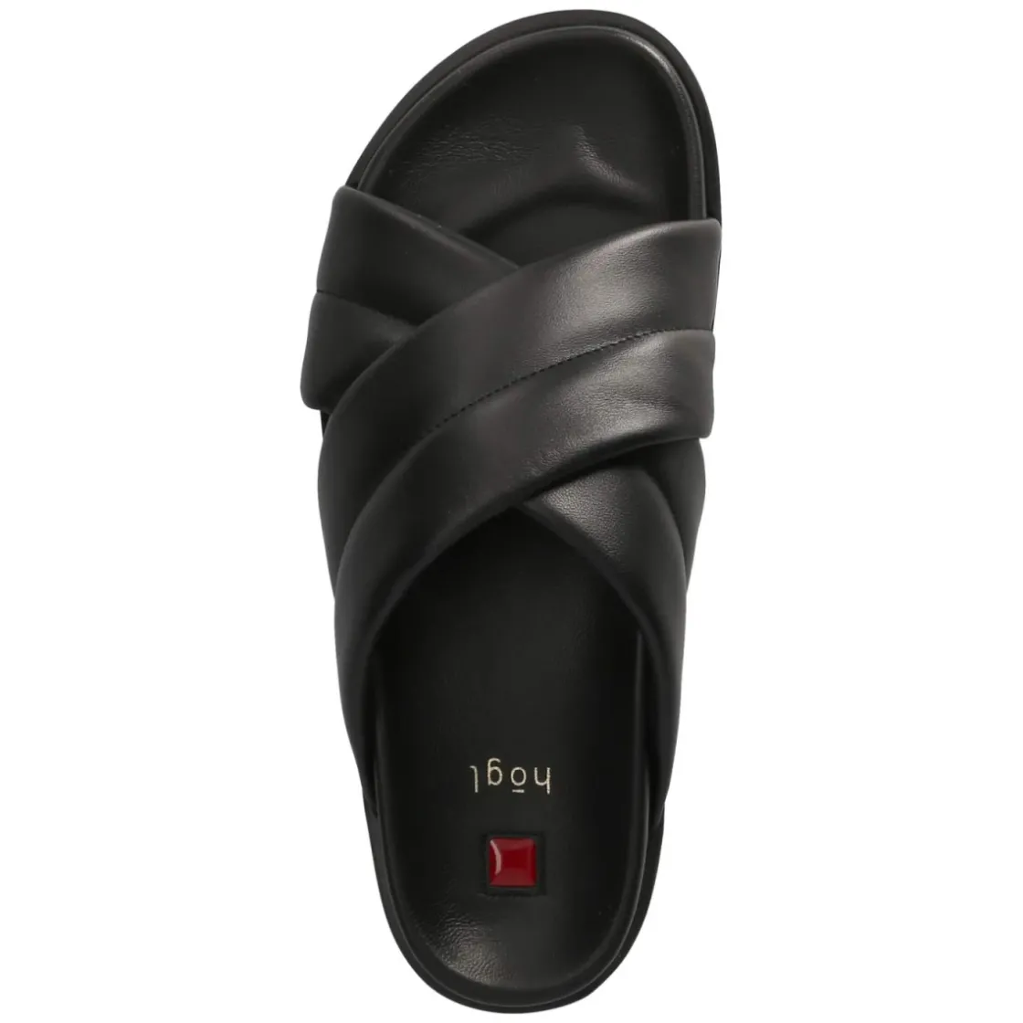 Schwarz, schlicht und doch markant: Die Pantoletten von Högl setzen auf eine klare Formensprache und feines Glattleder, das mit robustem Charakter überzeugt. Gekreuzte Zierriemen schmiegen sich über den Spann, dezente Ziernähte unterstreichen die hochwertige Anmutung. Die offene Schuhspitze und der unkomplizierte Einstieg ohne Verschluss sorgen für sommerliche Leichtigkeit, während das gepolsterte Fußbett und eine leicht flexible Laufsohle angenehmen Komfort bei jedem Schritt bieten. Eine Decksohle aus Leder rundet das Tragegefühl ab; der Größenhinweis fällt normal aus und erleichtert die Wahl. Ein Modell für Damen, das verlässlich durch Alltag und Abend begleitet. Modetipp: Zu cropped Jeans, Seidentop und filigranen Goldketten wirkt der cleane Look besonders modern.