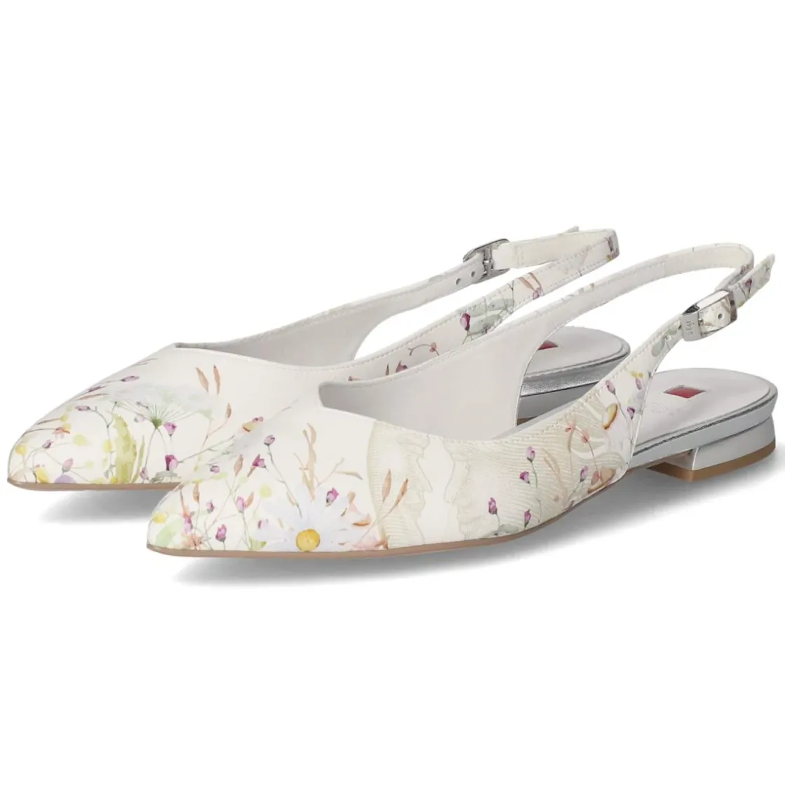 Die Slingballerinas von Högl verbinden feminine Leichtigkeit mit handwerklicher Qualität. Der spitze Leisten streckt die Silhouette, während weißes Glattleder mit dezentem Blumenprint für ein frisches Finish sorgt. Langlebiges Echtleder und eine hautfreundliche Lederdecksohle bieten wertige Haptik, das gepolsterte Lederfußbett erhöht den Tragekomfort im Alltag. Dank praktischer Schnalle lässt sich der Fersenriemen passgenau einstellen; die flexible, rutschhemmende Laufsohle sorgt für zuverlässigen Halt. Das Modell fällt normal aus und begleitet Damen souverän vom Office bis zum Event. Modetipp: Zu einer Cropped-Stoffhose und einer fließenden Bluse wirkt der Druck modern, alternativ setzt ein Midi-Denimrock einen lässigen Kontrapunkt.