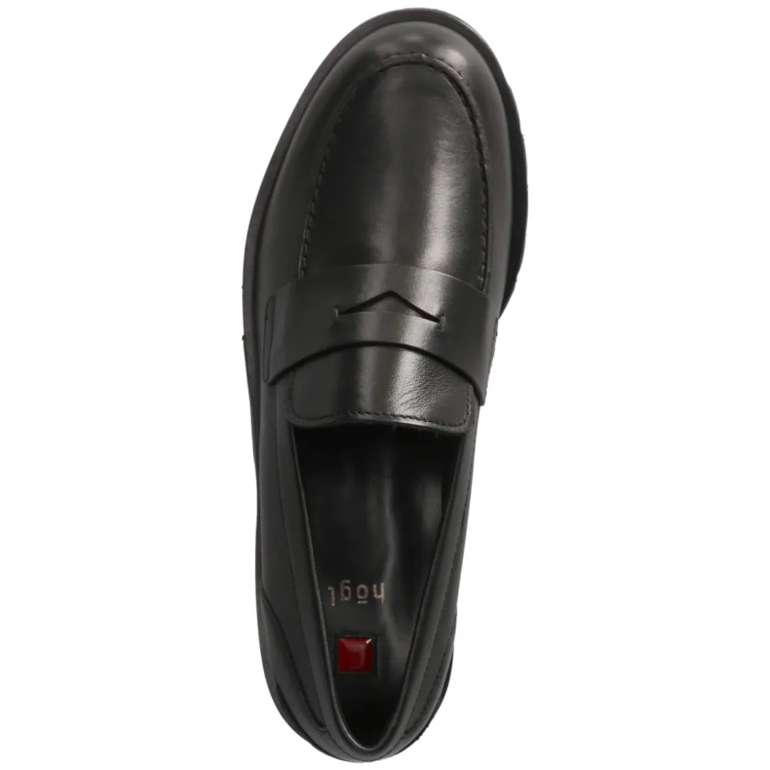 Der Damen-Slipper von Högl verbindet zeitlose Eleganz mit spürbarem Komfort. Schwarzes Glattleder in hochwertiger Verarbeitung trifft auf eine runde Schuhspitze und eine dezente Wulstnaht, die zusammen mit dem breiten Zierriemen für eine stilvolle Optik sorgen. Das atmungsaktive Echtleder und das hautfreundliche Lederfutter umschließen den Fuß angenehm, während das gepolsterte Lederfußbett langanhaltende Bequemlichkeit bietet. Der unkomplizierte Einstieg ohne Verschluss und die verstärkte Ferse geben Alltagstauglichkeit und Stabilität. Mit 2 cm Blockabsatz und einer flexiblen, rutschhemmenden Laufsohle entsteht ein souveränes Laufgefühl. Der Schuh fällt normal aus und passt vielseitig in die Garderobe. Modetipp: Zur verkürzten, leicht ausgestellten Anzughose und einer seidigen Bluse entsteht ein moderner Look; ein strukturierter Blazer in Anthrazit hebt die elegante Optik zusätzlich hervor.