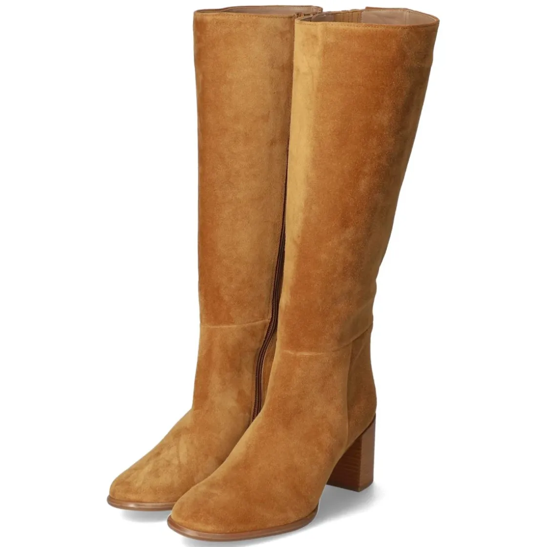 Dieser Damen-Stiefel von Högl vereint klassische Linien mit modernem Komfort. Das weiche Rauleder in warmem Braun umschmeichelt das Bein, während der 6 cm hohe Blockabsatz sicheren Stand und eine feminine Silhouette bietet. Eine hautfreundliche Lederdecksohle sorgt zusammen mit der flexiblen, rutschhemmenden Laufsohle für angenehmes Gehen im Alltag. Der komfortable Reißverschlußeinstieg erleichtert das An- und Ausziehen, der Schaft misst ca. 36 cm in Höhe und Umfang und sitzt dank Elastikeinsatz mit drei Zierstreifen besonders anpassungsfähig. Die runde Schuhspitze und langlebiges Echtleder unterstreichen den zeitlosen Charakter. Fällt größengetreu aus. Modetipp: Ton-in-Ton mit Midikleid und kamelfarbenem Wollmantel stylen, dazu eine strukturierte Saddle-Bag für einen edlen City-Look.