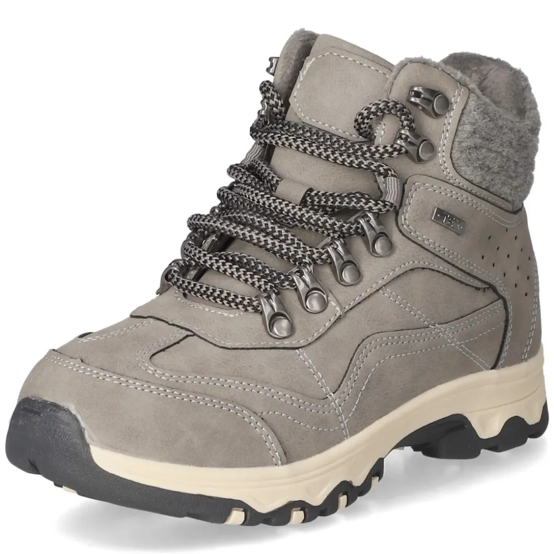 Die Schnürstiefeletten von Jane Klain liefern eine gelungene Mischung aus Stil und Funktion. Der robuste Textil-Synthetik-Mix mit rund zulaufender Spitze wirkt modern und angenehm unaufgeregt in Grau. Dank TEX-Ausstattung ist das Obermaterial wasserabweisend, während das leichte Futter an kühlen Tagen wohlige Wärme spendet. Schnürsenkel sorgen für individuellen Halt, der seitliche Reißverschluss und die Anziehhilfe ermöglichen einen schnellen Einstieg. Ein verstärkter Zehen- und Fersenbereich erhöht die Langlebigkeit, die flexible, rutschfeste Profilsohle gibt Sicherheit auf nassem Untergrund. Die Decksohle aus Synthetik ist als Wechselfußbett ausgeführt und unterstützt den Tragekomfort. Der Schaftrand in Filzoptik setzt einen weichen, winterlichen Akzent und unterstreicht die vielseitige Kombinierbarkeit. Modetipp: Mit Strickkleid und Wollmantel entsteht ein stimmiger City-Look, Ton-in-Ton-Socken dürfen dezent über dem Schaft hervorblitzen.