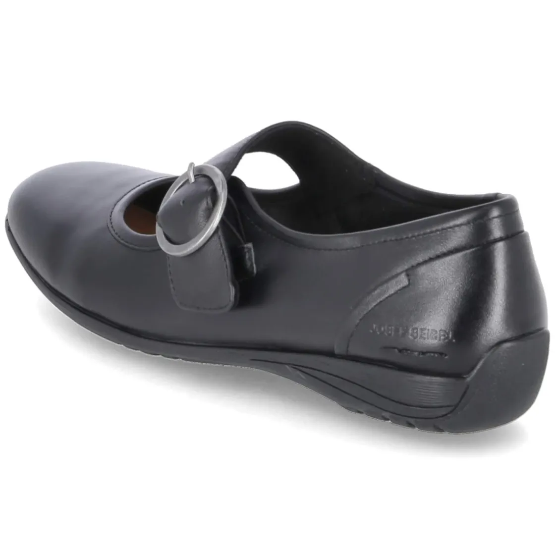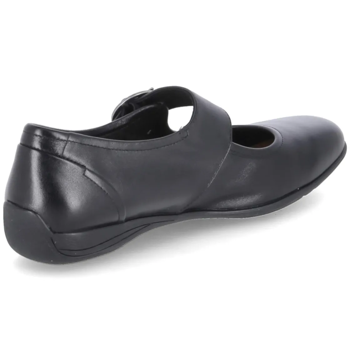 Der Ballerina FENJA 18 von Josef Seibel verbindet schlichte Eleganz mit verlässlichem Komfort. Glattes, langlebiges Echtleder in klassischem Schwarz formt eine runde Silhouette, die durch ein breites Riemchen mit Schnalle und Elastikeinsatz über dem Spann sicher sitzt. Eine verstärkte Ferse stabilisiert, während die gepolsterte Lederdecksohle und das weiche Fußbett den ganzen Tag über angenehmes Tragegefühl bieten. Die sehr flexible, rutschhemmende Laufsohle ermöglicht leises, trittsicheres Gehen auf unterschiedlichen Untergründen. Der Schuh fällt normal aus und ist damit unkompliziert zu kombinieren. Modetipp: Zu knöchellangen Zigarettenhosen und einem feinen Stricktop entsteht ein moderner Office-Look; ein fließender Midirock verleiht dem Modell eine feminine Note für den Abend.