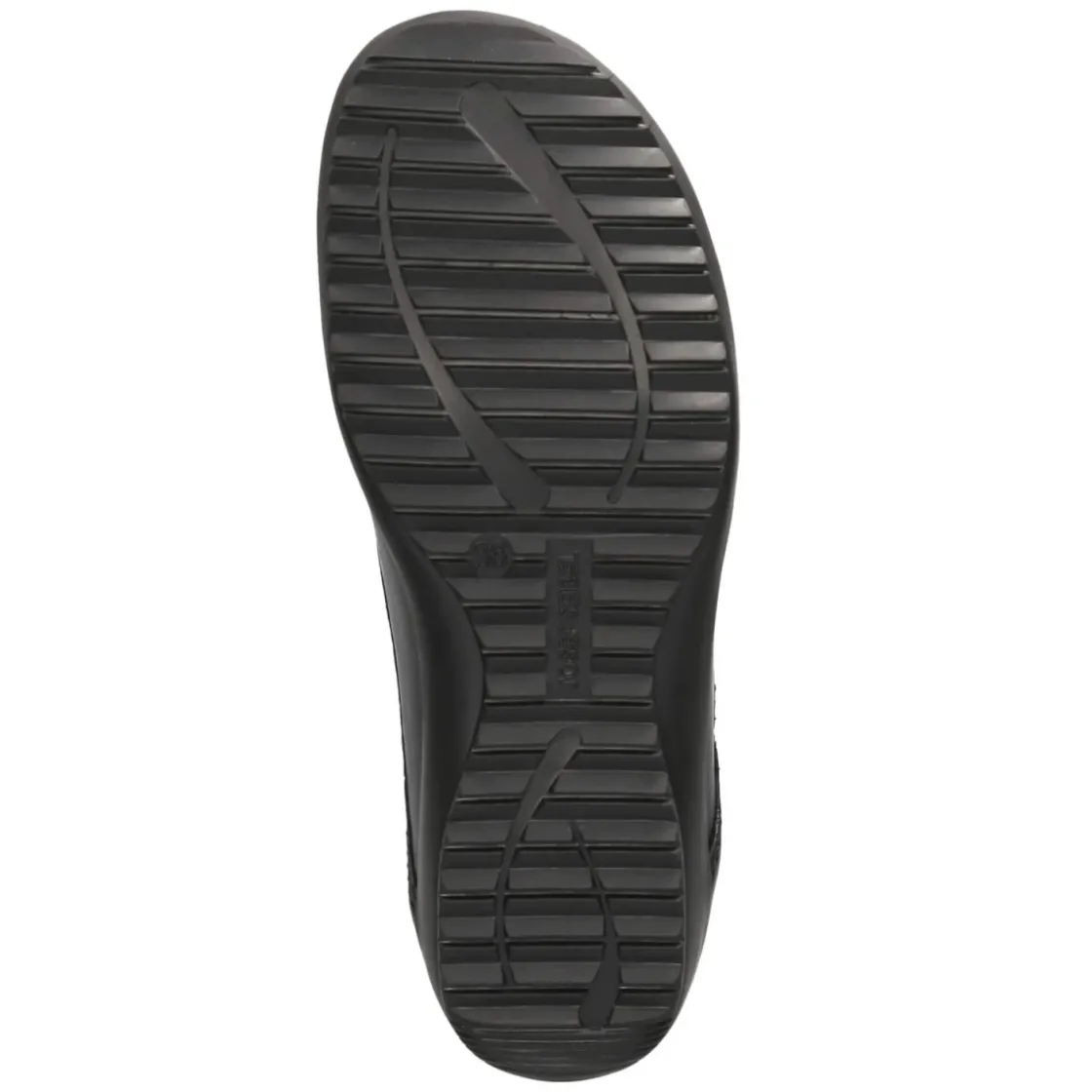 Das Modell NALY 09 von Josef Seibel vereint robuste Alltagstauglichkeit mit zeitlosem Stil. Schwarzes Glattleder in langlebiger Qualität trifft auf eine runde Kappe und eine klassisch geführte Schnürung, die eine präzise Anpassung ermöglicht. Rustikale Ziernähte, dezente Markendetails und die verstärkte Ferse unterstreichen die wertige Verarbeitung. Innen sorgt ein leichtes Fleecefutter für behagliche Wärme an kühlen Tagen, während die textile Decksohle und die gepolsterte Wechseldecksohle spürbaren Komfort bieten. Das Wechselfußbett lässt sich bei Bedarf einfach herausnehmen. Eine flexible, rutschhemmende Laufsohle bringt sicheren Halt in der City. Die Passform fällt normal aus und eignet sich für den täglichen Einsatz. Modetipp: Zu Straight-Leg-Jeans und kurzem Wollmantel entsteht ein moderner Look, der auch mit einem Strickkleid und blickdichter Strumpfhose mühelos überzeugt.