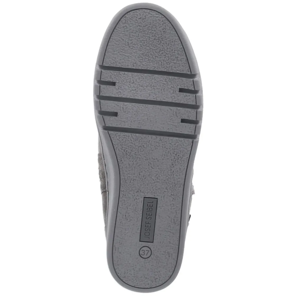 Die Wintersboots JESSIE 09 von Josef Seibel verbinden behagliche Wärme mit unverwechselbarem Stil. Das graue Rauleder in langlebiger Echtleder-Qualität erhält durch rustikale Nähte und die runde Schuhspitze einen natürlichen Look, während die verstärkte Ferse Stabilität verleiht. Warmfutter und eine textile Decksohle sorgen für angenehmes Klima an kalten Tagen, das gepolsterte, herausnehmbare Fußbett unterstützt komfortabel bei jedem Schritt. Dank Reißverschluss gelingt das An- und Ausziehen mühelos, die flexible, rutschfeste Laufsohle bietet sicheren Halt auf winterlichen Wegen. Als verlässlicher Begleiter im Alltag überzeugt der Boot sowohl in der Stadt als auch auf Landspaziergängen. Modetipp: Zu Strickkleid, Wollmantel und groben Rippstrümpfen entsteht ein lässiger Winter-Look; eine Crossbody-Bag in Taupe setzt einen harmonischen Akzent zum Grauton.