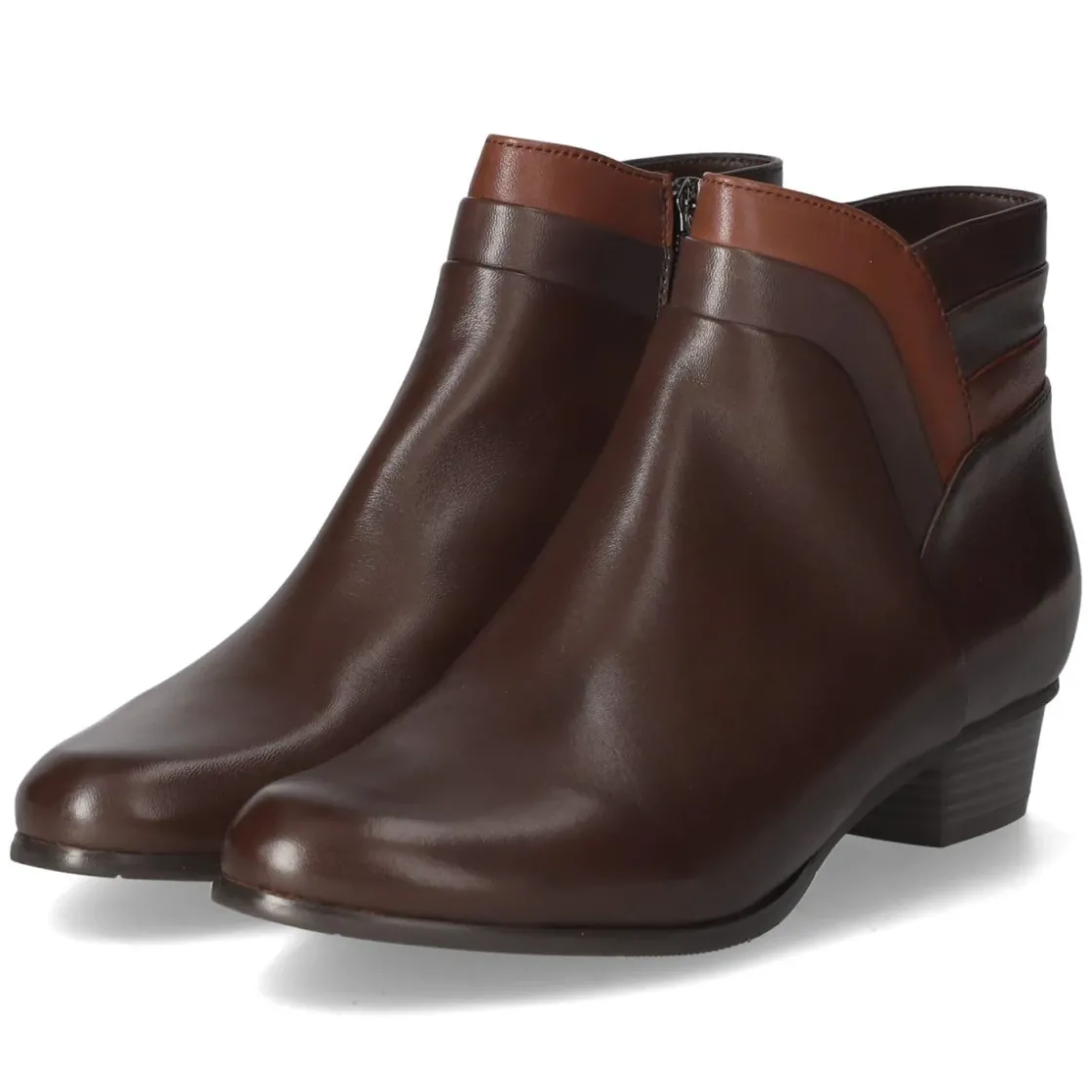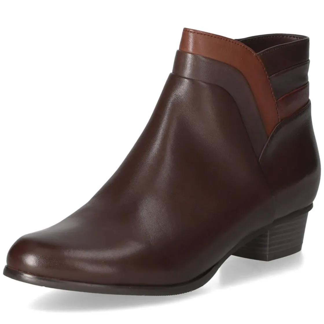 Der Ankle Boot von Kaerlek verbindet zeitlose Ästhetik mit durchdachtem Komfort. Glattes, braunes Leder und eine runde Schuhspitze verleihen dem klassischen Modell eine elegante Linienführung, während der 3 cm hohe Blockabsatz sicheren Stand bietet. Der seitliche Reißverschluss sorgt für bequemes An- und Ausziehen. Innen schmiegt sich ein leichtes Fleecefutter an den Fuß, die Textil- und Synthetikdecksohle unterstützt zusammen mit dem gepolsterten Fußbett den ganzen Tag über. Eine flexible, rutschfeste Laufsohle steigert die Trittsicherheit auf unterschiedlichen Untergründen. Drei dezente Zierstreifen am Schaft setzen einen stilvollen Akzent und eröffnen vielfältige Kombinationsmöglichkeiten von Jeans bis Midikleid. Der Schnitt fällt normal aus und lässt Raum für Feinstrümpfe oder dünne Socken. Modetipp: Zu Cropped-Denim und einem weichen Camel-Mantel entsteht ein monochromer Look, der die warme Braunnuance edel zur Geltung bringt.